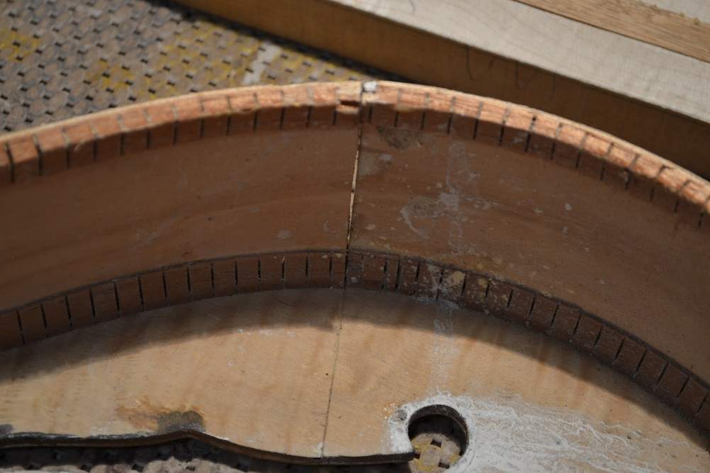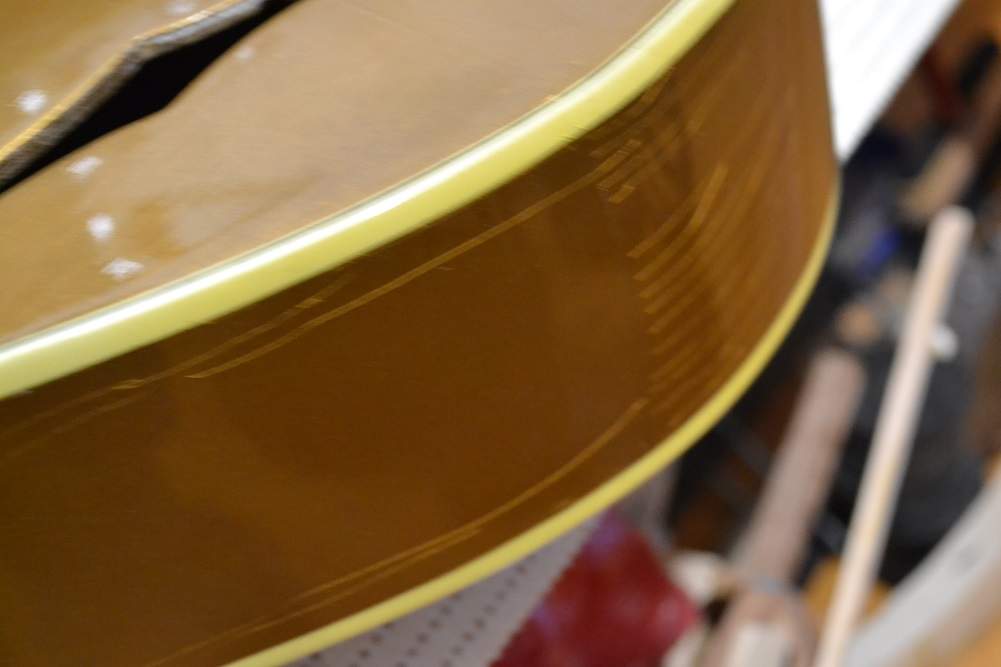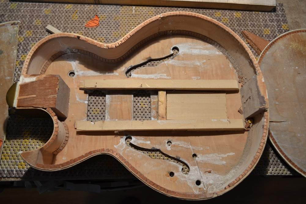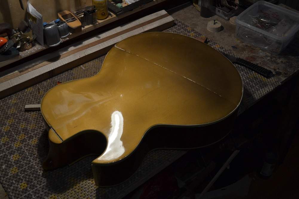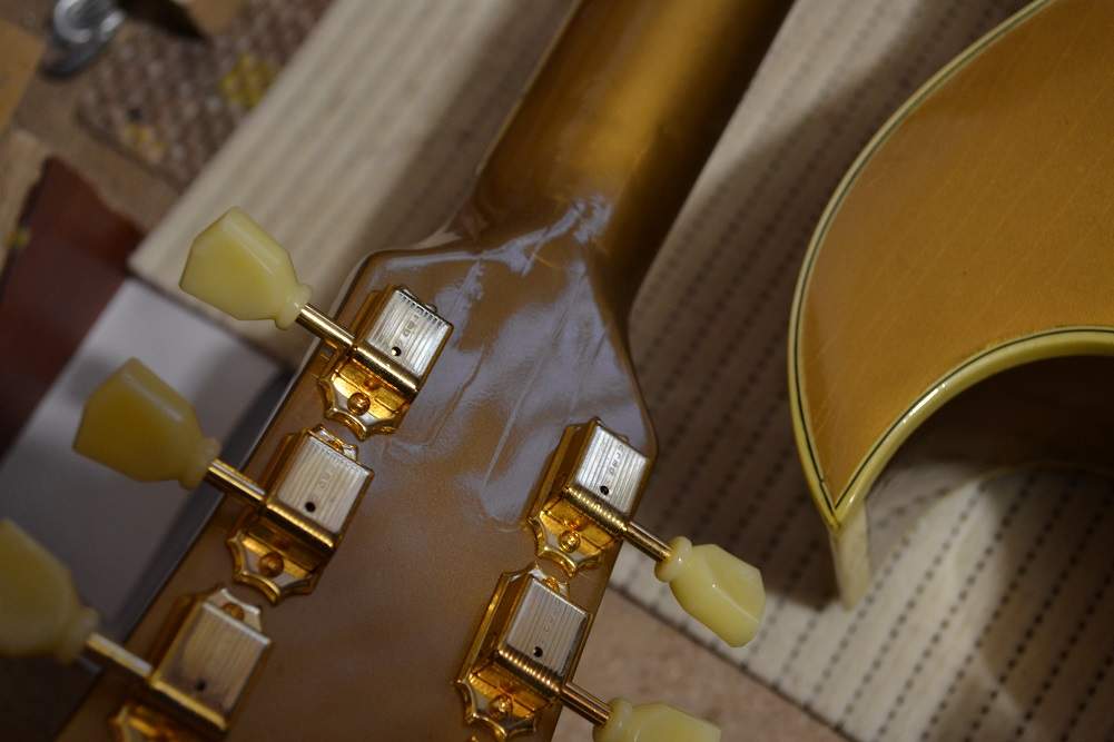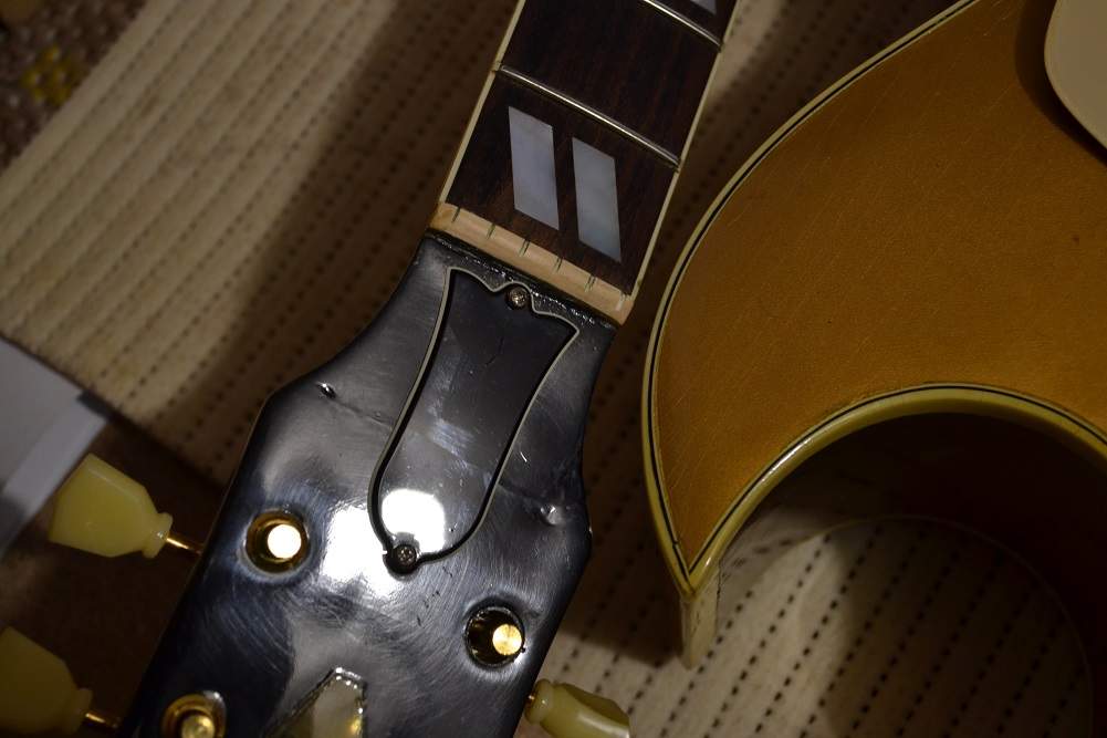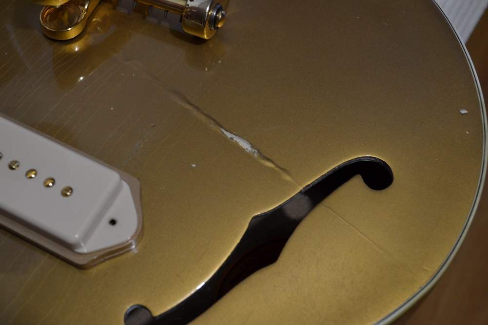 При выяснении всех обстоятельств и выколачивании денег обратно, выяснилось, что гитара была забракована на фабрике, где отбракованный материал просто распиливают на пиле