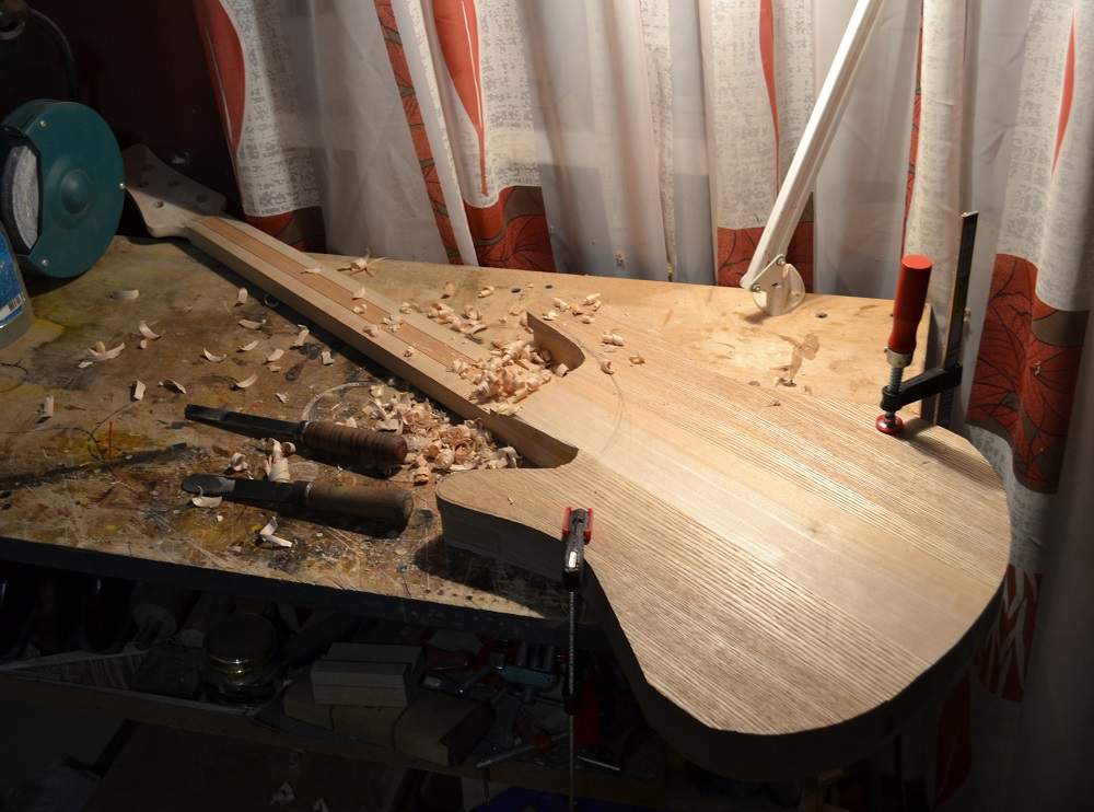 Новый год и новые интересные проекты. Один из них с очень интересной историей. Один перспективный и талантливый музыкант заказал на Ебее гитару, и гитара приглянулась, и цена. Оплатил, как положено, пролетел месяц, и вот гитара приехала из США к нам на Урал... Но радости гитара не вызвала, и гриф отвалился, и сама гитара видимо побывала в передряге. Скажете, такое бывает при пересылке