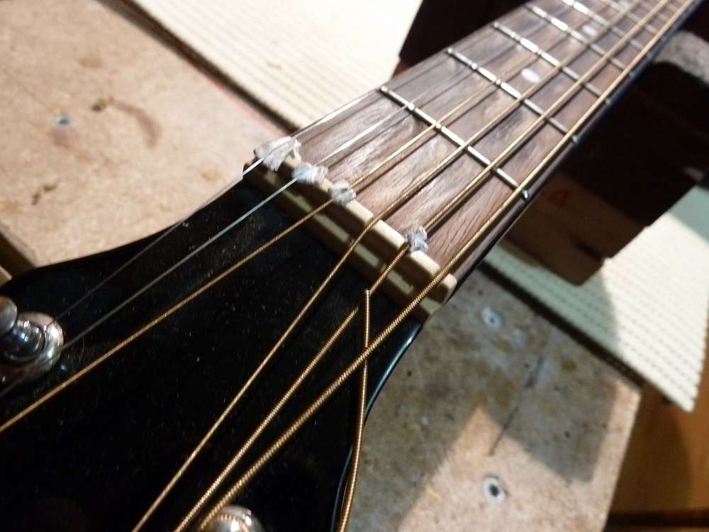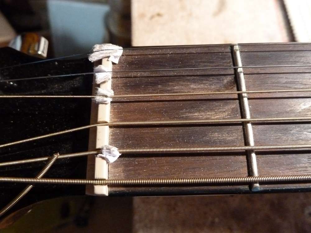 Нормально! В подобных случаях "умельцы" чего только не подкладывают под струны. И зубочистки, и полиэтилен, и бумагу, и фольгу от сигаретных пачек...