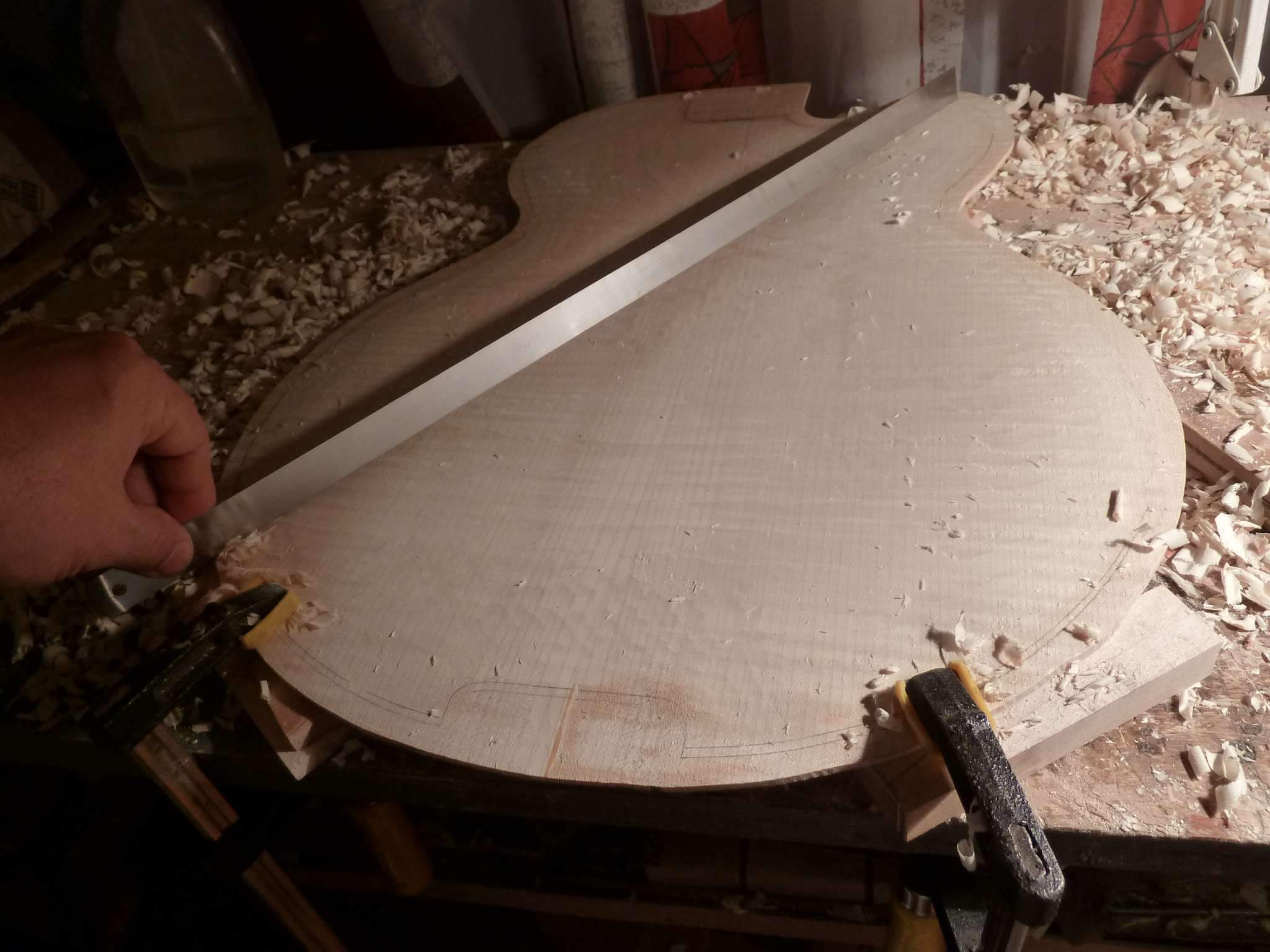 Как можно определить толщину снятия. Ослабляем шестую струну, снимаем с верхнего порожка и мимо грифа опускаем по торцу накладки, смотрим в каком моменте расстояние струны до 12 лада будет в приемлемых для игры пределах ( напр. 3 мм или меньше). Ну и не забывать, что высоту можно еще подкорректировать и высотой косточки на подставке.