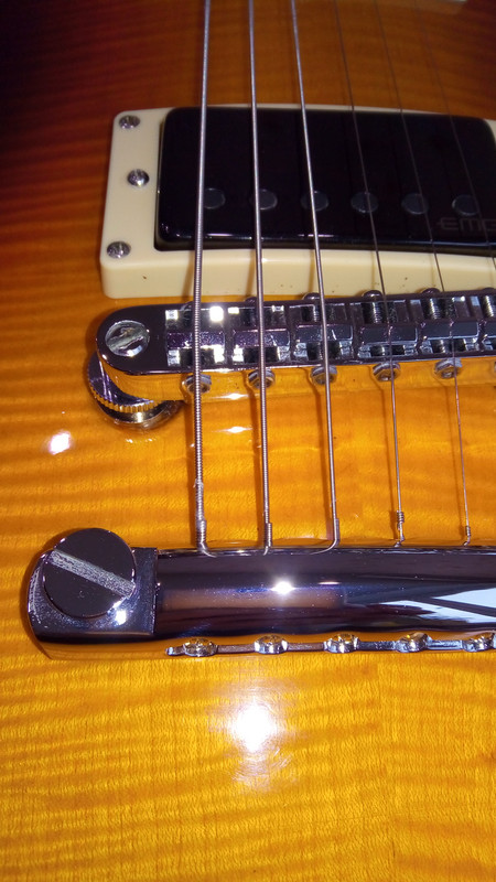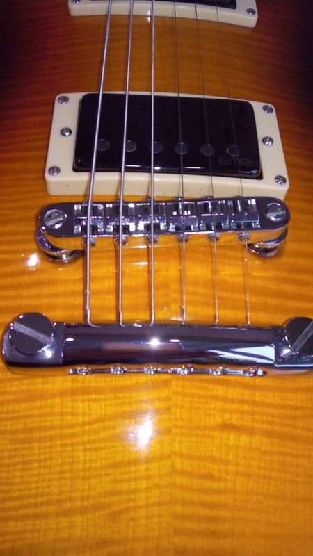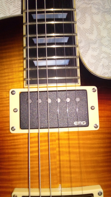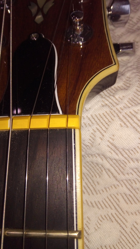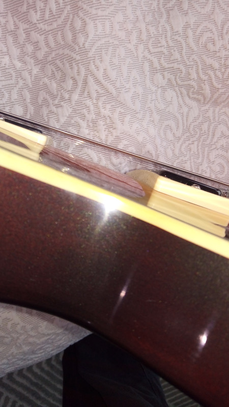 Рамки смещены от центра, буду исправлять. Магниты не под струнами, а смещены так, что сруны 1 и 2 вообще не над магнитами... Бриджевые отверстия деланы переделаны. Стопбар смещен относительно бриджа и 6я струна, уходя на бридж смещается левее как-бы изламываясь.... По грифу струны идут со смещением в центр, то есть сёдла бриджа имеют пропилы тупо по-центру.... Это тоже влияет на то, что струна не над магнитом, а где-то в космосе. Если делал копию, ну почему корпус тоньше оригинала на 3мм! Подстава слов нет и в звуке это слышно. И зачем этот дебидьный двойной биндинг на грифе, это срань полная. Пороже вклеен криво, такая мелочь для кого-то, но когда 1мм к 6й струне перекос - это жопа полная. Для кого эти поделки? В общем, ощущение от работы, что совсем не мастер, а гаражный безработный, который взялся за это от необходимости. Второй инструмент этого мастера покупать не хочется.