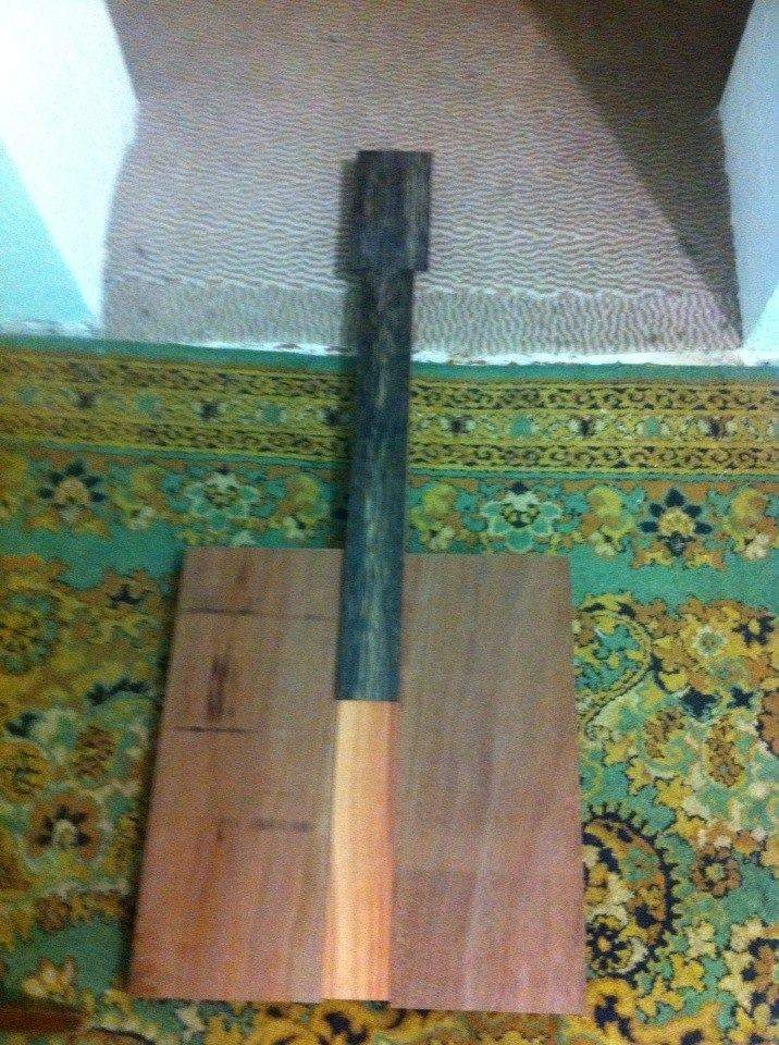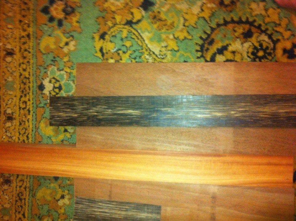 Для этого было закуплено дерево:- дэка-махагони гондурас, гриф- махагони сантос, накладку сначала взял черную пальму. вместе с шпоном 4мм на головку грифа. Потом заказал палисандр