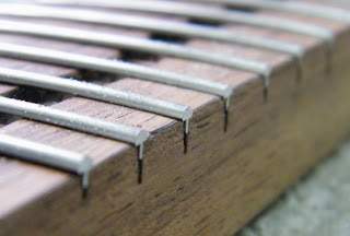 Гриф лакированный, и с окантовкой а-ля Gibson (с закрытыми торцами), лады ~4 мм.