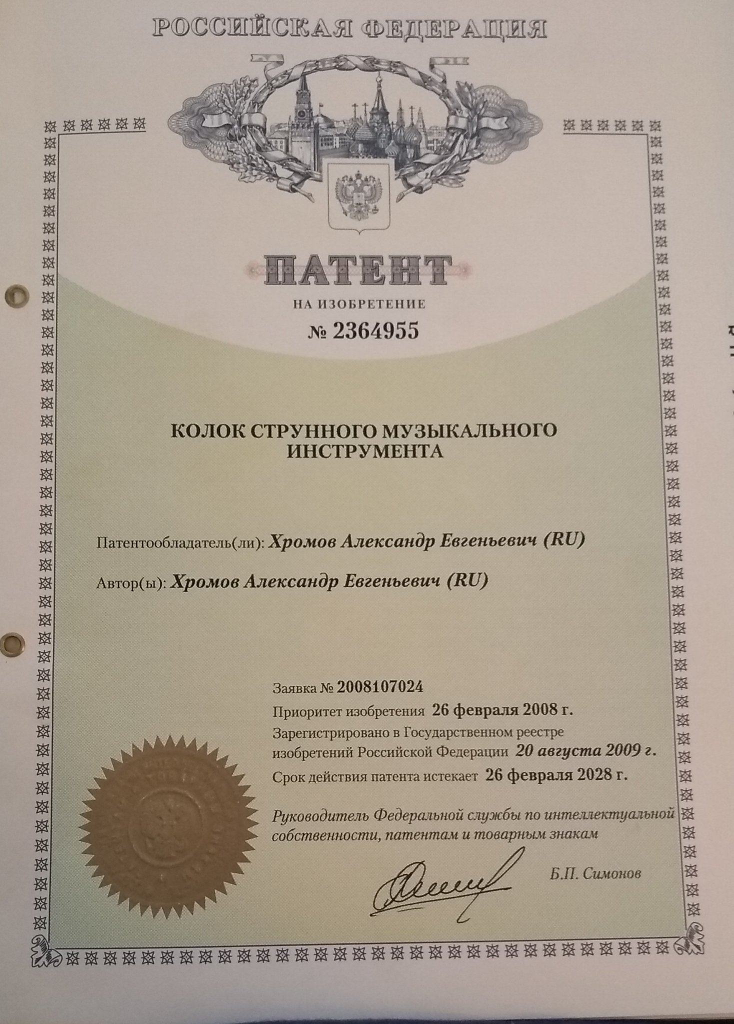 Но патент не оформил.