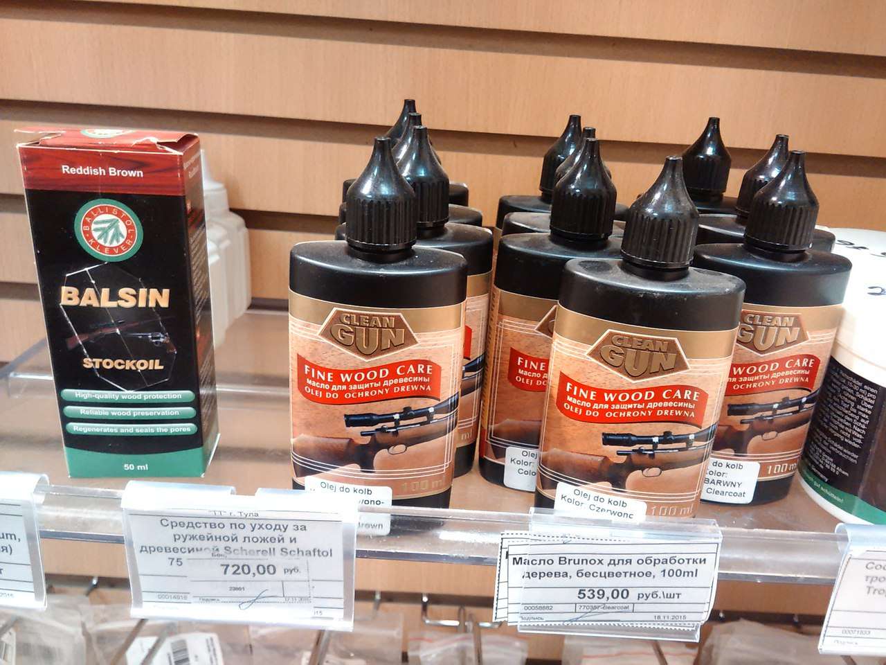 Привет всем. Решил тут озаботиться маслом поприличнее, обычно пользовал данлоповскую лимонку либо их же кондиционер (причем он мне нравился больше почему то). Сразу скажу, что лить не лью то и дело как уже читал в множестве тем, просто бывает иногда надо - сменишь лады, она чищенная, светлая, некрасивая совсем. Протереть вобщем чтобы придать нормальный вид изделию. Изучал тут ассортимент масел по городу. Вобщем в художественном салоне нашел льняное масло двух видов: рафинированное, и уплотненное №2. на цвет считай одинаковые. Что значит "уплотненное №2" - хз. Также был еще в оружейном магазине, там есть масла для ухода за прикладами, с тонирующим эффектом, вот такие: (см. картинку ниже). Думаю сижу: или пригнать себе банку какой нибудь бормы, льняного или тунгового?... Просто они там здоровые, я даже не знаю куда мне столько то... И потом опять таки, есть же еще и датское. Как в них разобраться то?
