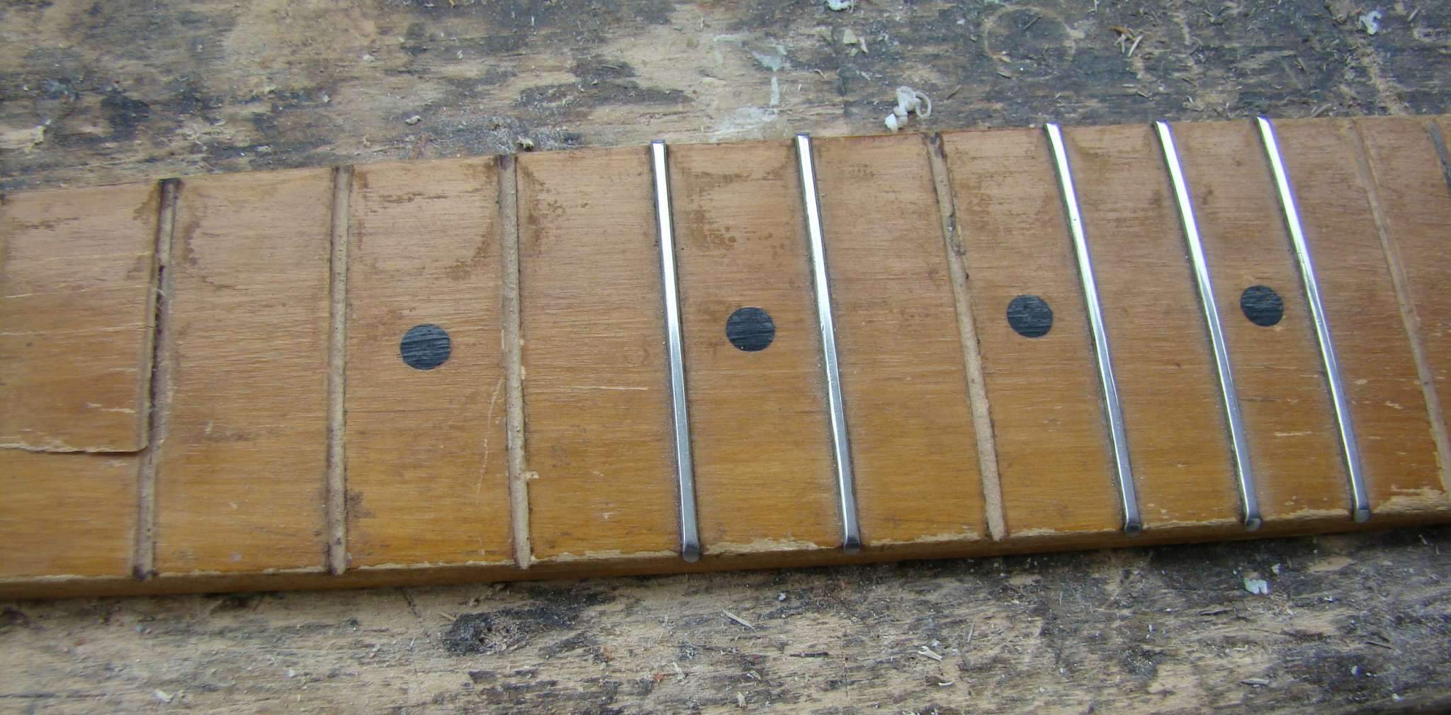 щас я вам про бакситку расскажу. мне в ремонт приходил самопальный бас из ссср и там лады были сделаны из обычных кусков нержавеющей проволоки диаметром 2мм. и приклеены они были на как раз бакситку. со временем стали выпадать.