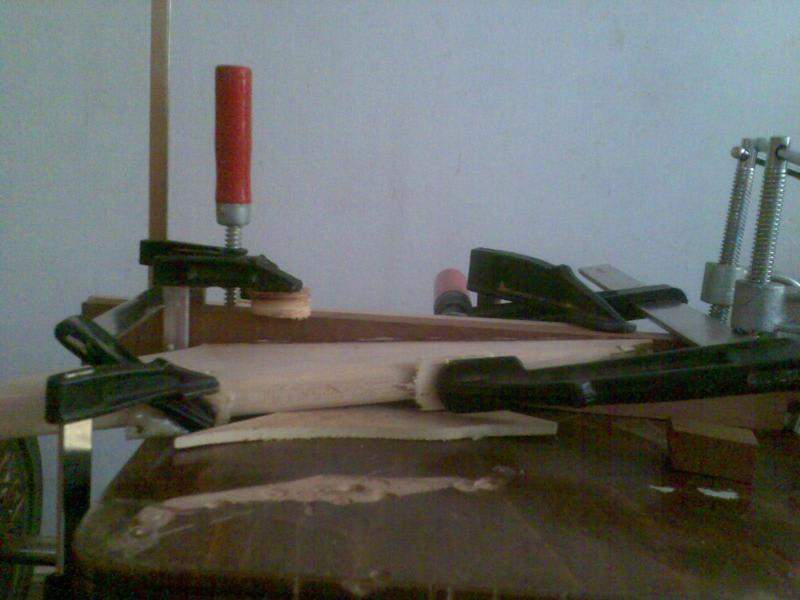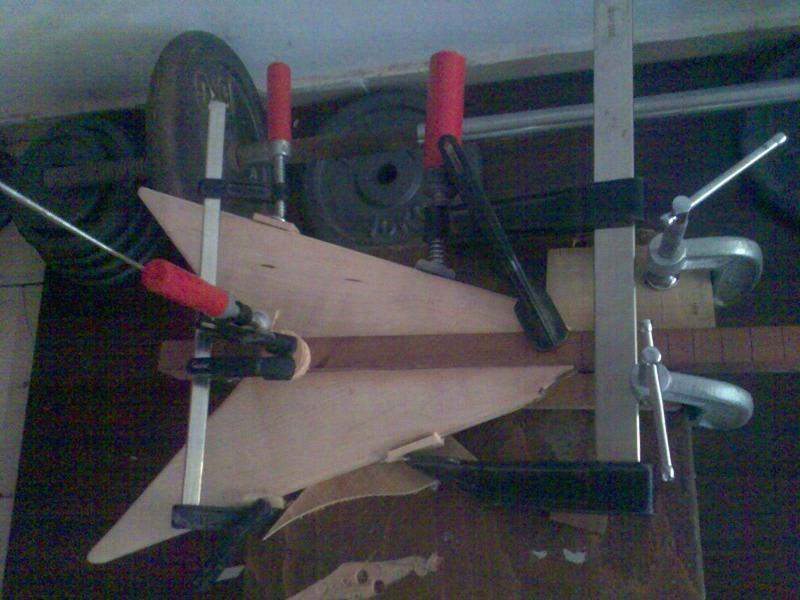 На будущее: сначала, когда придаешь форму делай ее предварительную, оставляй "ступеньки" на которые потом обопрутся струбцины, и только после склеивания эти ступеньки срезай и обрабатывай вчистую.... и добавил:Вообще - плюс за пофигизм: другой бы после такого разгула флуда в теме послал бы все к черту