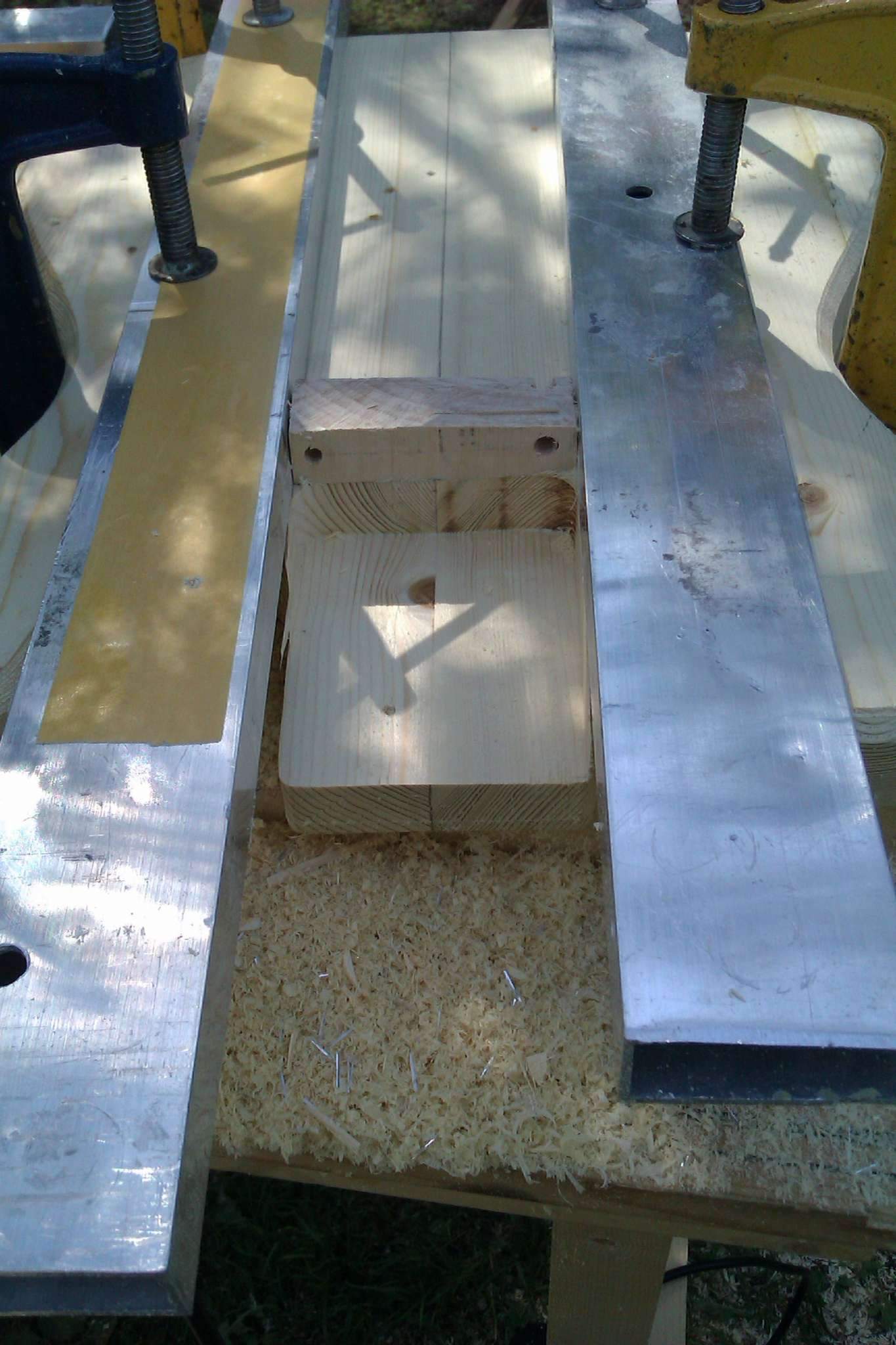 1. Разметив параллельно сторонам бланка осевую и контур грифа и т.п., используя боковой упор отфрезеровал полости под усиление и анкер.