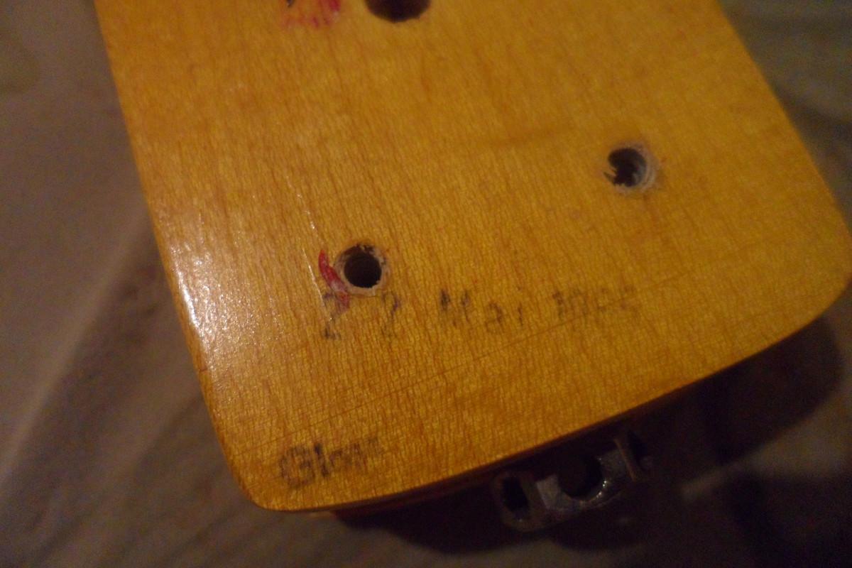 анкерный болт расположен на пятке грифа..после очистки грифа от артефактов бывшего хозяина ,гриф был покрыт датским маслом..