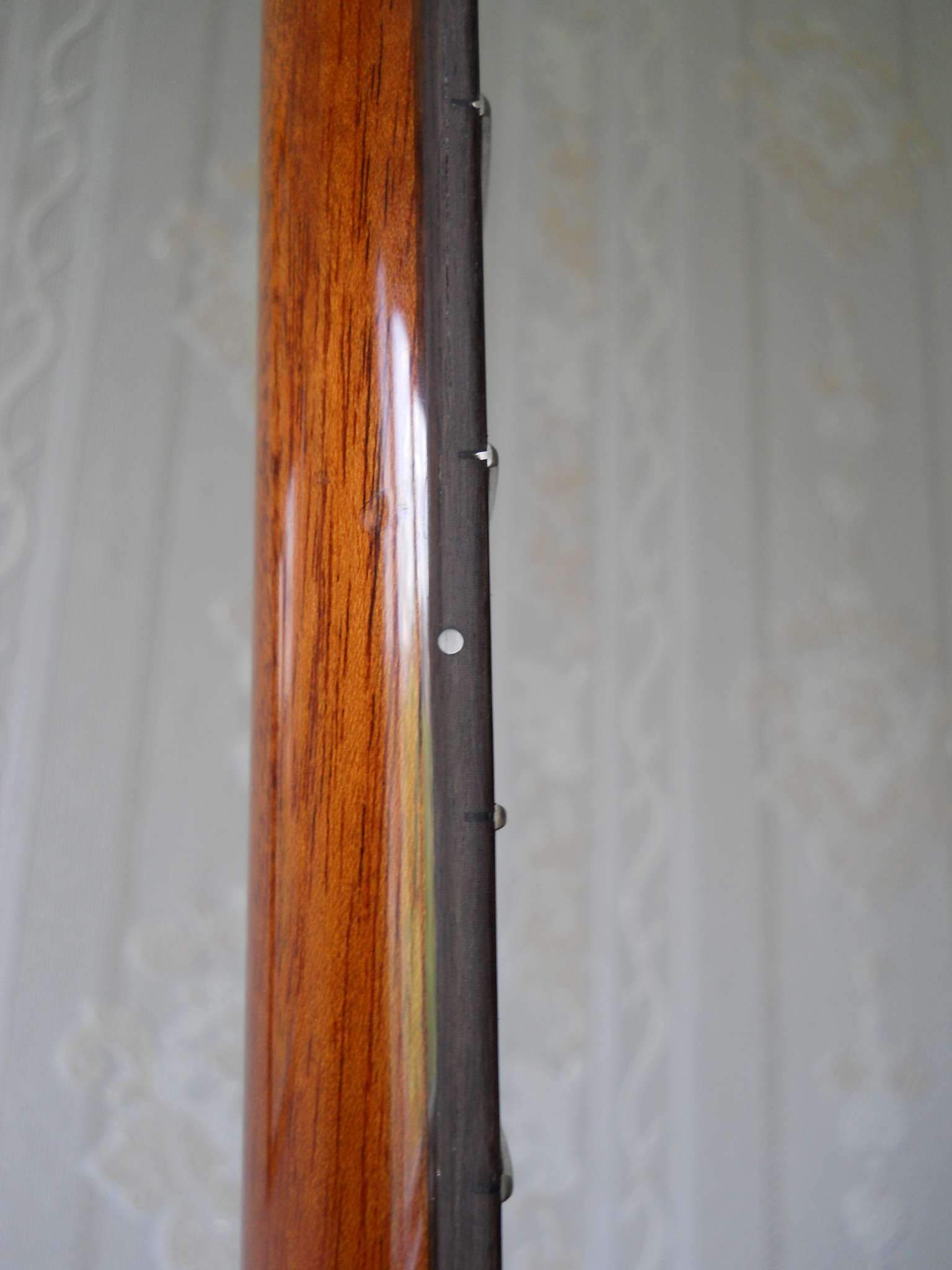 Ни тактильно, ни эстетически не напрягает - по моему скромному мнению, торец может быть оформлен как угодно, а скольжение пальца по дереву не хуже, чем скольжение по лаку. Напрягает то, что не знаю, не будет ли со временем палисандр истираться будучи незащищенным лаком, и напрягает точка невозврата - т.е. невозможность уже залакировать, замазав поверхность маслом...