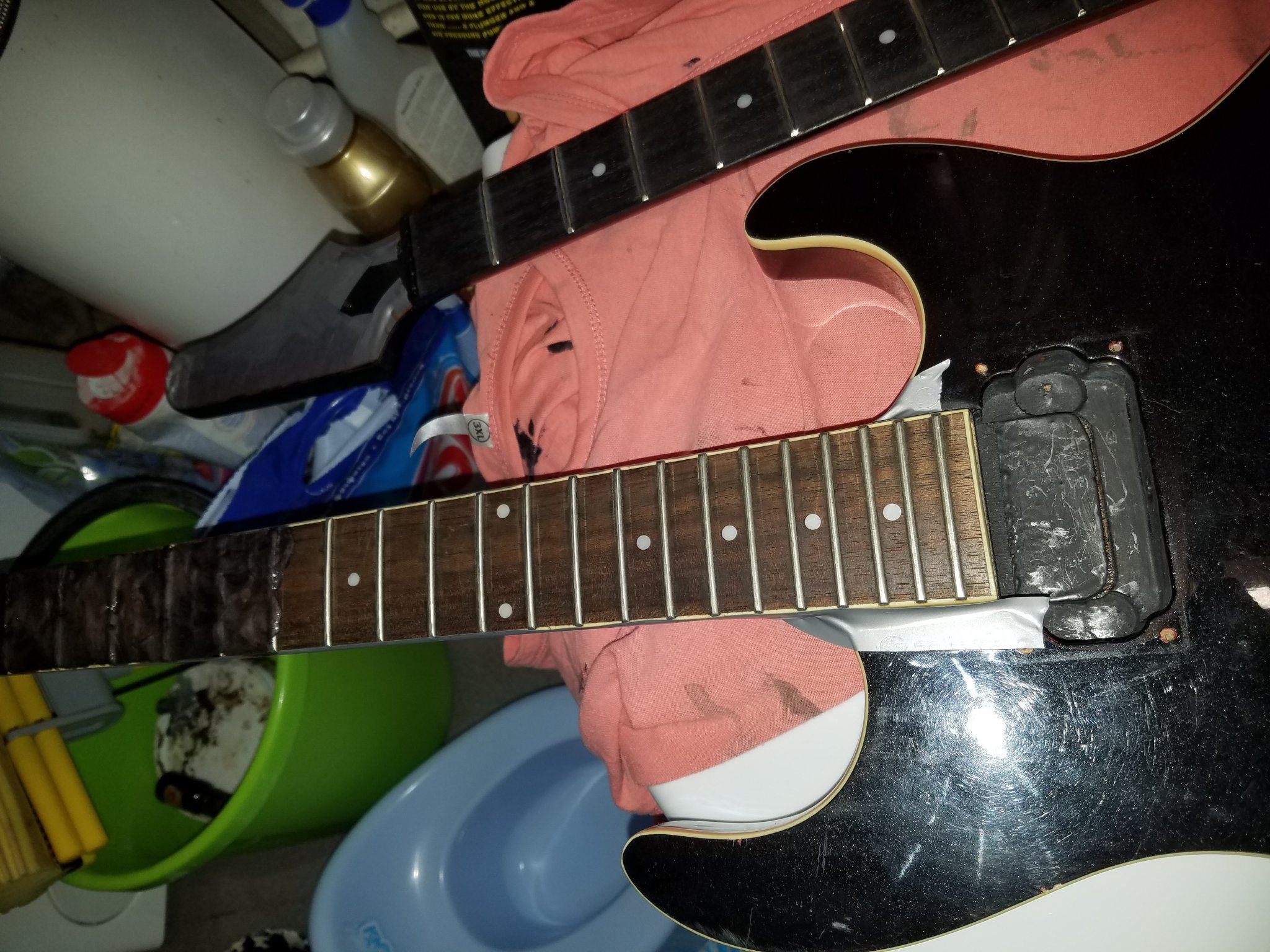 - инкрустация не пачкается, крем впитывается только в палисандр и оттирается салфеткой с инкрустации и ладов