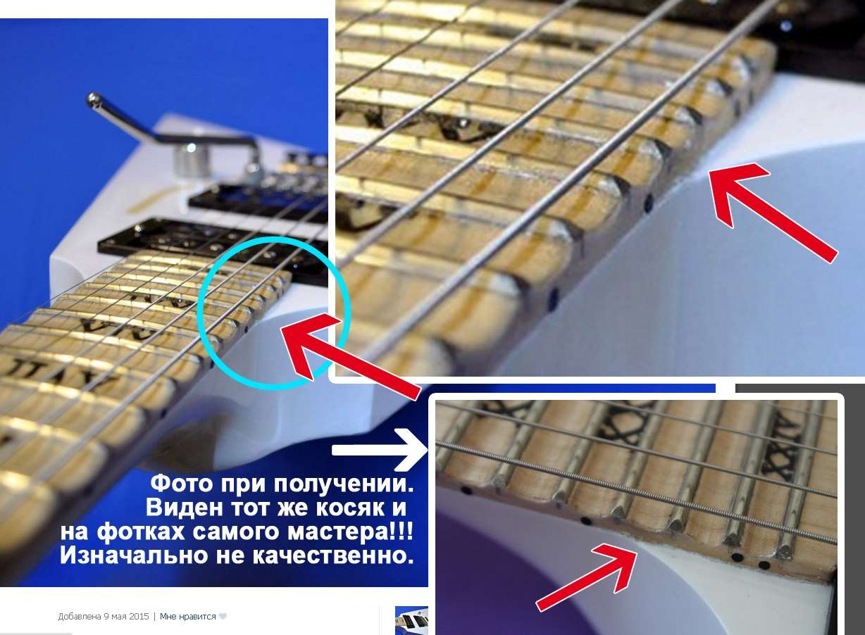 У меня была чуть похожая ситуация (накладка из черного дерева начала лопаться) мастер предложил сделать новый гриф,или новый инструмент))Даже не дошло до конфликта)Все четно разрулилось. Заказывайте у проверенных мастеров