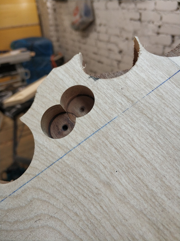 Итак, первая фреза: Форстнера на 20мм, с хвостовиком 8 мм и высокими оборотами. Ей планирую по-черновому выбирать дерево в кармане грифа и под звучками