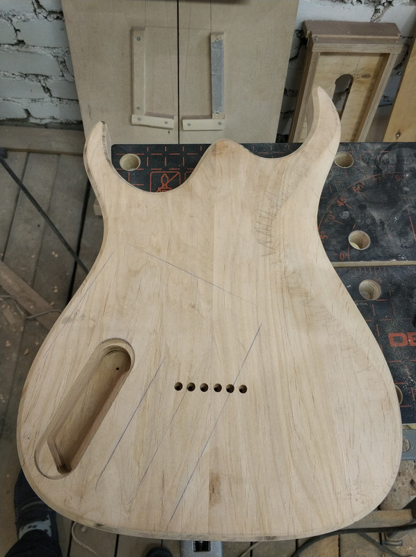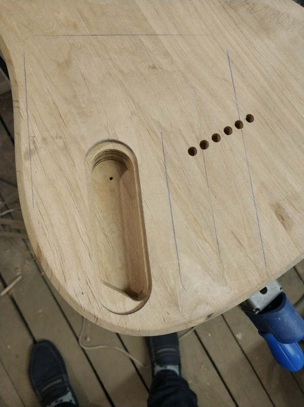 Работа по гитаре не стоит на месте. Отфрезерованы отверстия под потенциометры