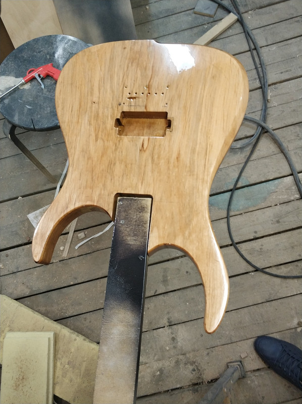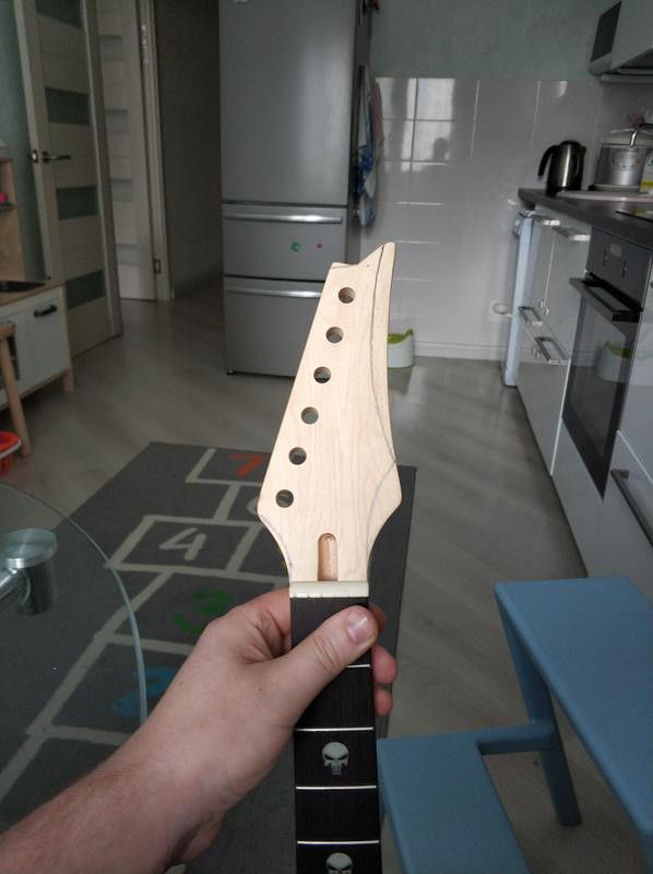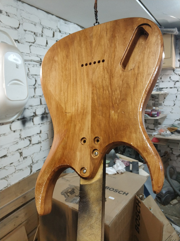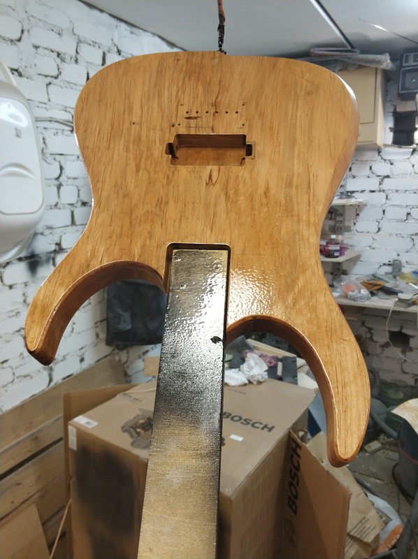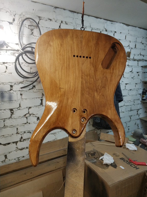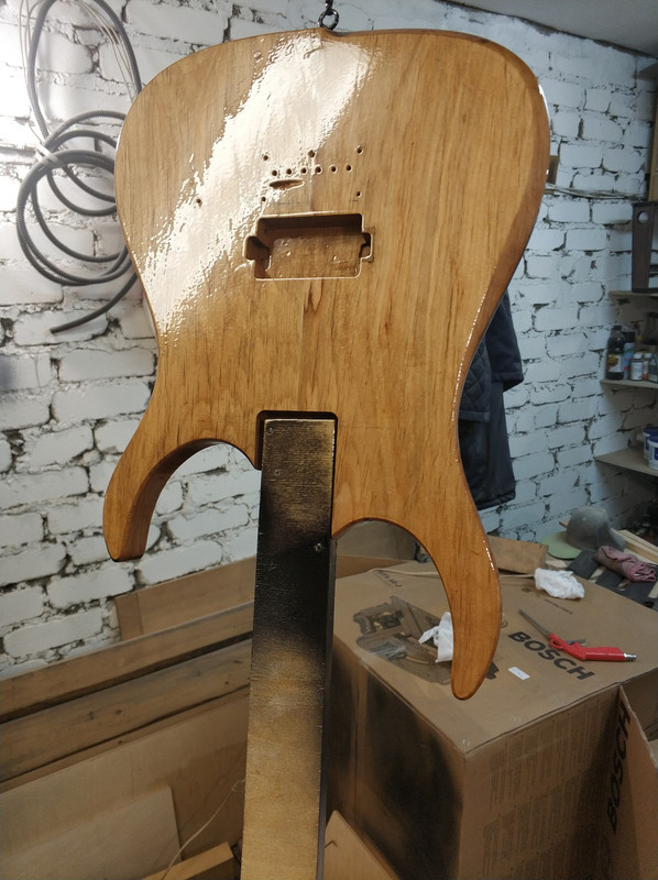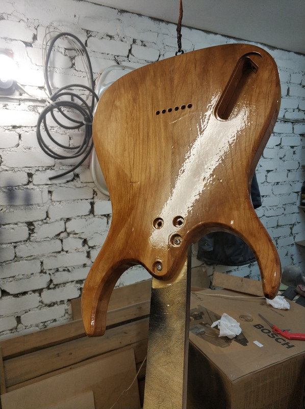 позвонил в сайерлак, уточнил колеруют ли они краску, получил положительный ответ. Нашел нужный цвет в каталоге и заказал краску на основе полиуретана. Теперь гитара недельку, вторую, будет сохнуть перед покраской цветом.