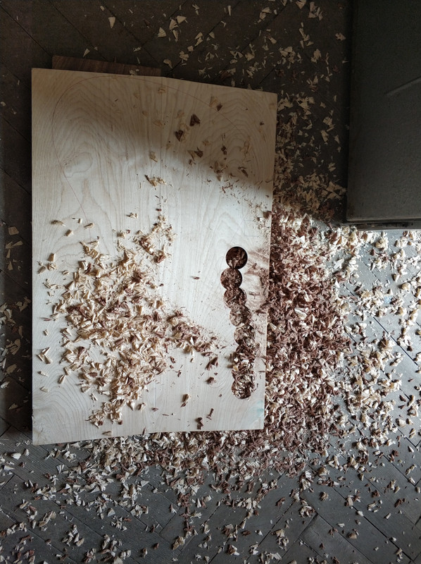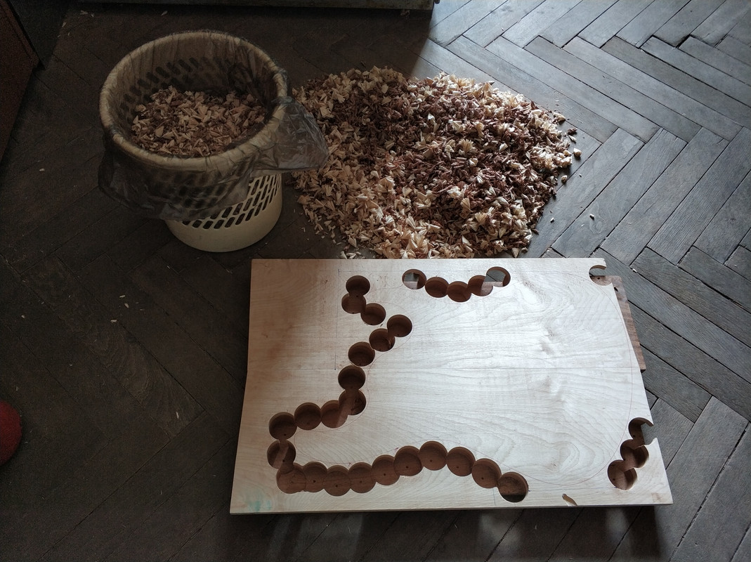 Сегодня решил подготовить боди к фрезеровке. Зарядил свело Форстнера, поставил дрель в стойку и...