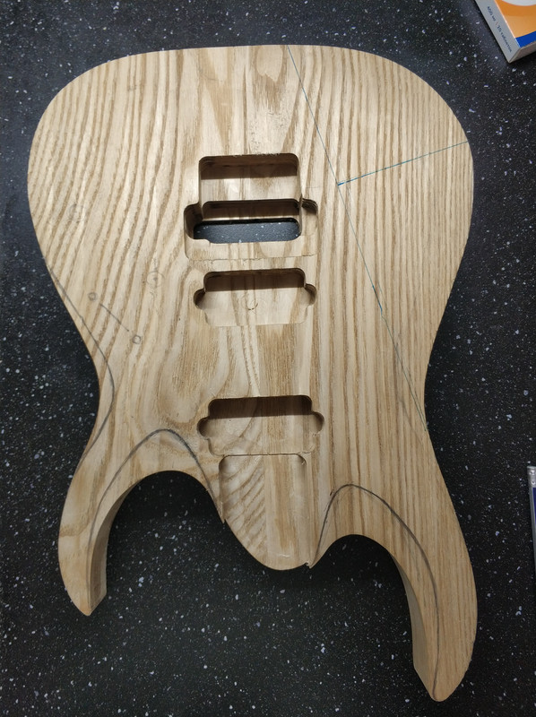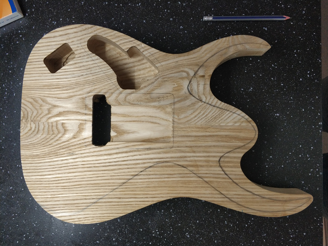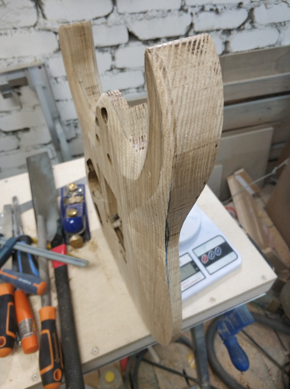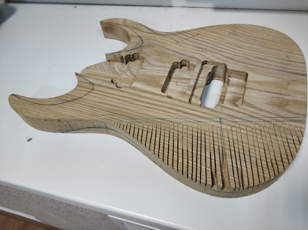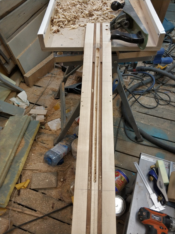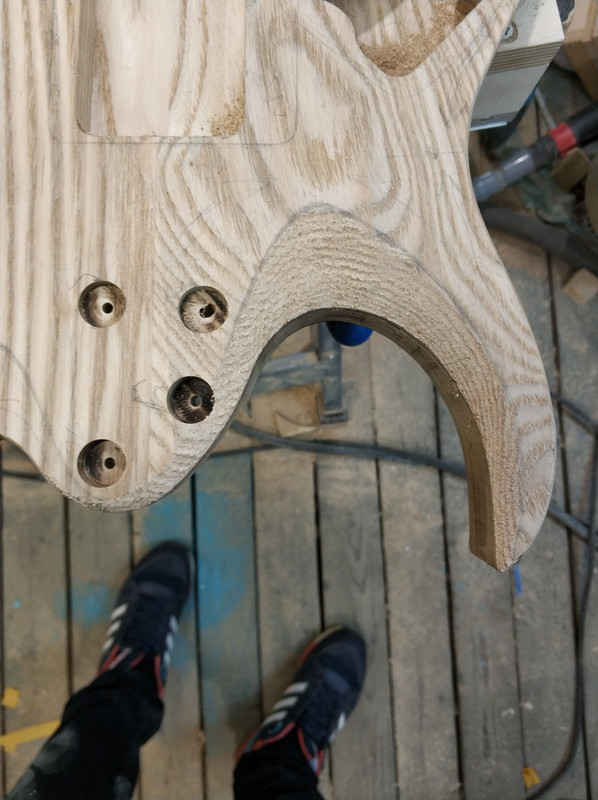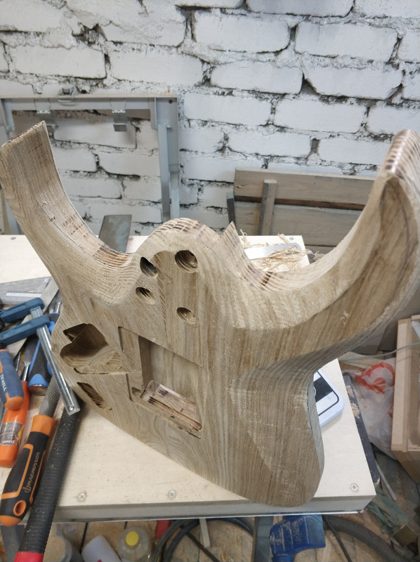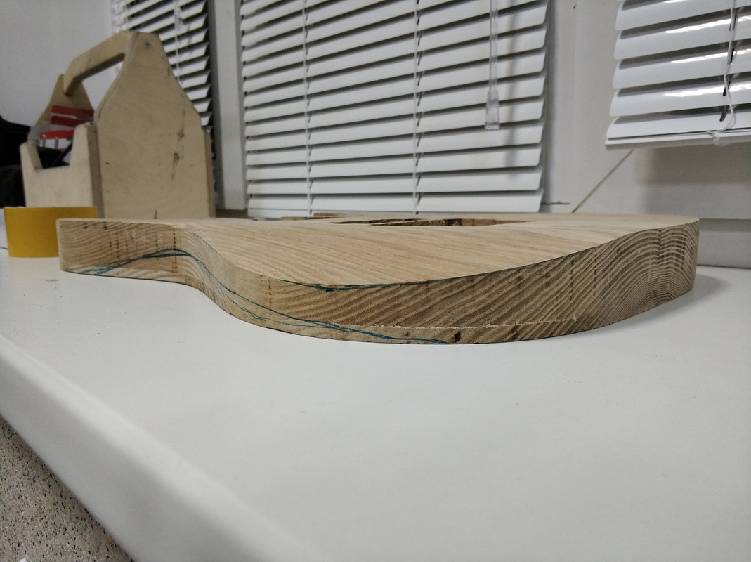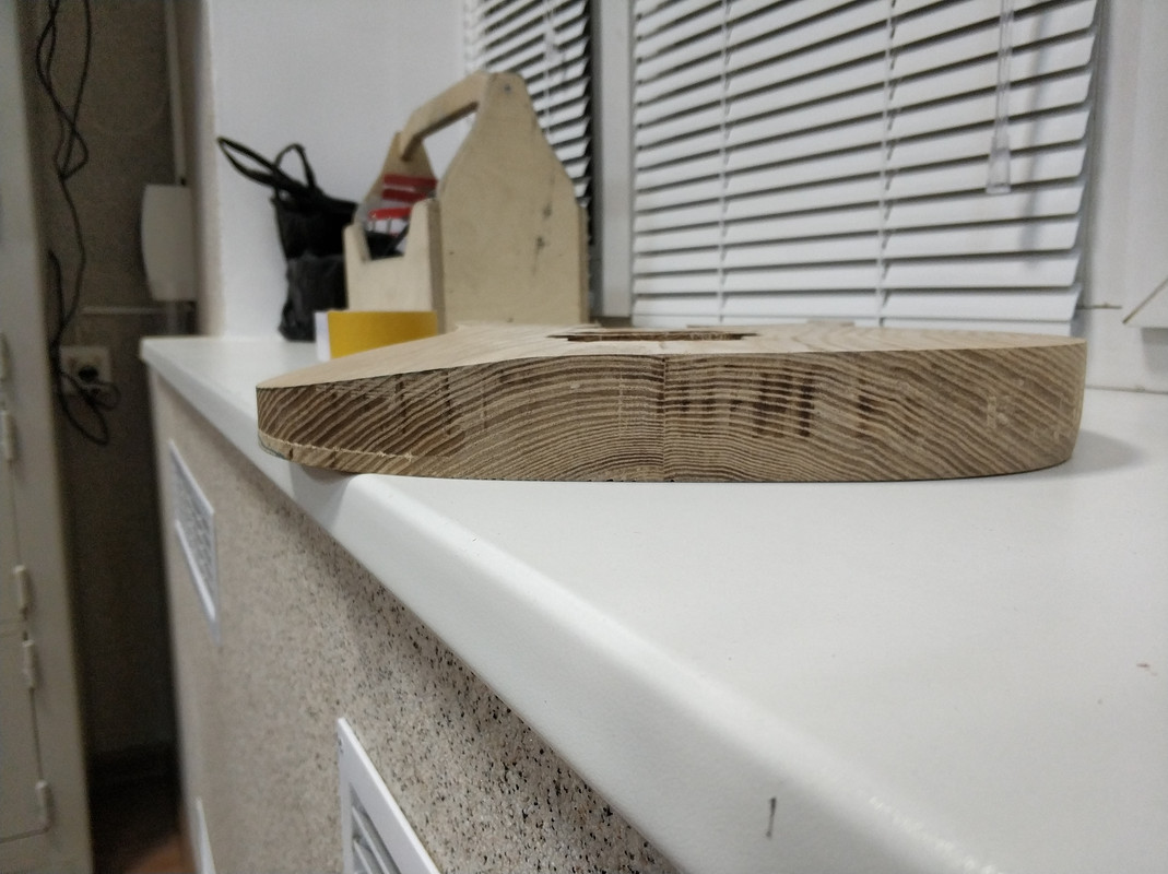 Делал гриф. Отлично все разметил. Сделал все пазы для анкера и карбона. Потом решил сделать угол головы.