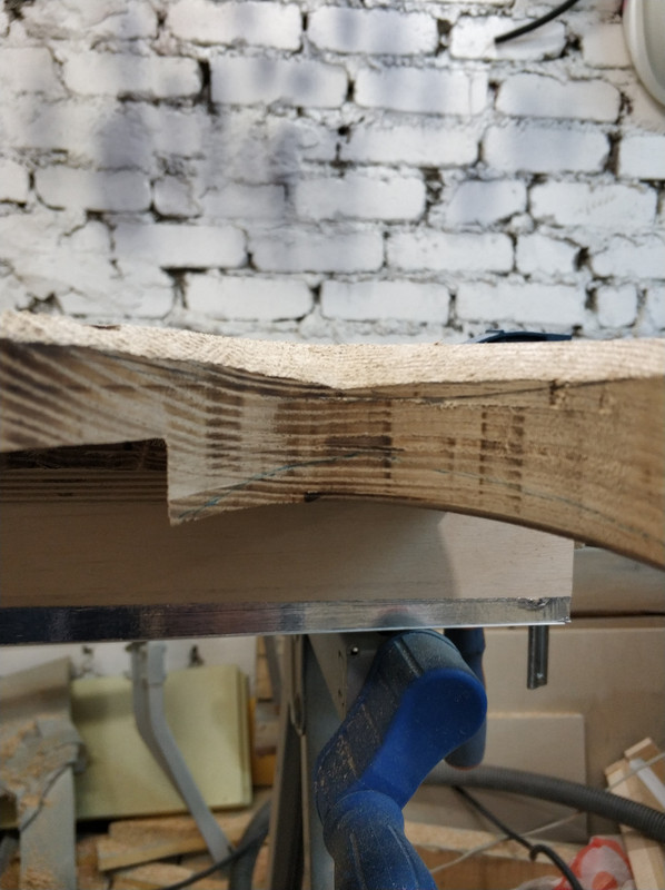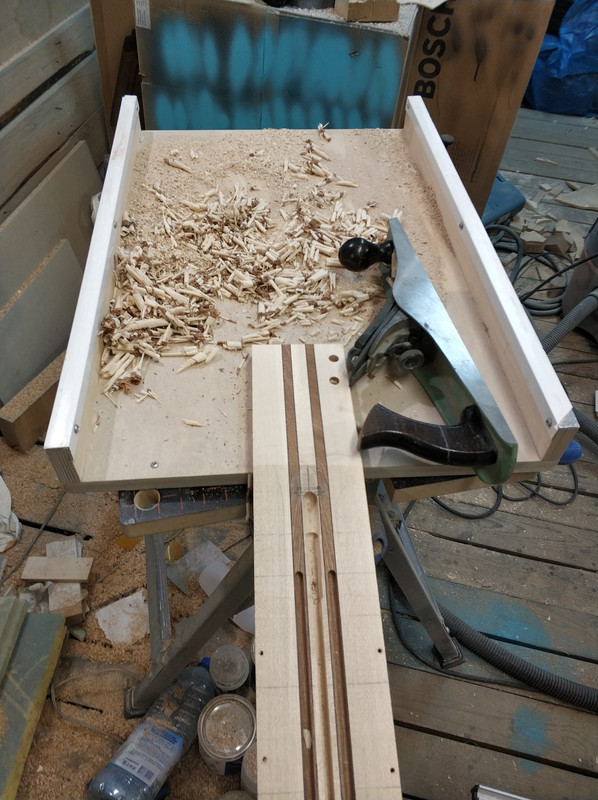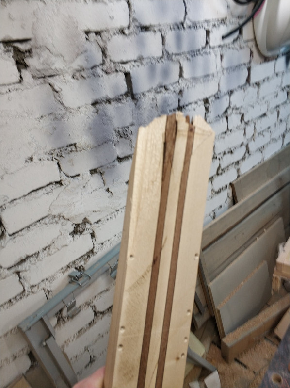 С внешней делал рубанком, в принципе все шло нормально, но уже употел стругать и решил фрезером пройтись. В итоге упорол заготовку. Там где должно было быть 12 мм стало 10. Ну думаю, ничего шпон подправит. В итоге стало 8 мм. Результат пяти часовой работы на смарку....