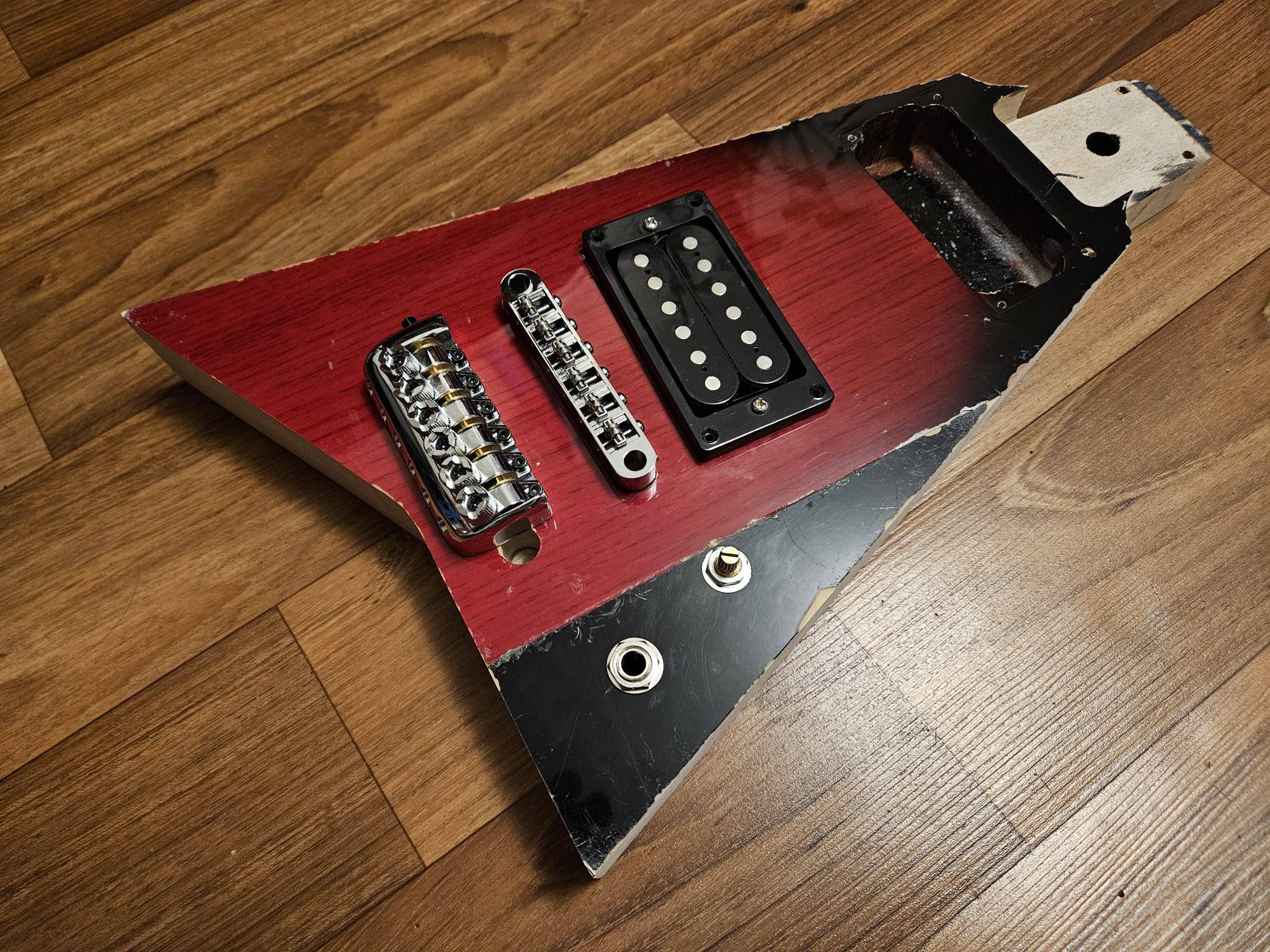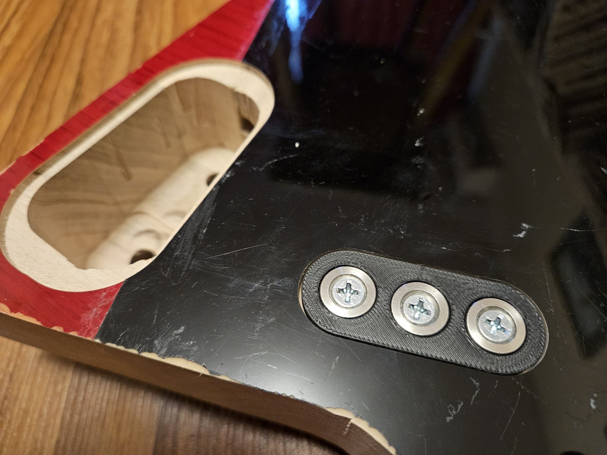 В принципе мне эту гитару не продавать, можно было и так оставить, под крышкой было бы не видно, но постарался исправить - увеличил паз, изменил форму. Ещё задиры виднеются, но это подшлифую, подправлю, и нормально скроется под экранировкой.