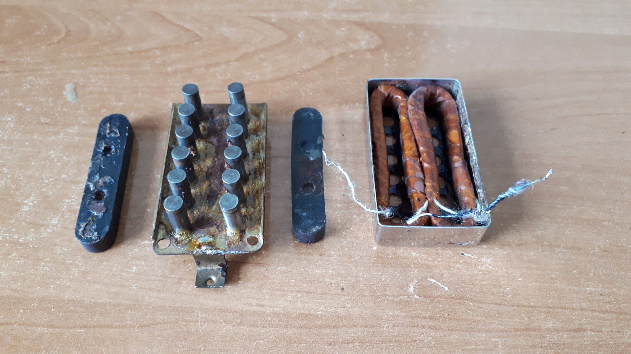 UPD: Короче, начитался я про ориентацию магнитов в хамбе и ориентацию хамбов на гитаре. На русских ресурсах не очень много информации, пришлось штудировать забугорные. Если кратко, то на ориентацию магнита в хамбакере можно забить. Не, конечно в моем случае, когда в одном хамбе два магнита (а в современном он всего один), нужно чтобы на одном полюсе хамба был плюс, на другом минус, поэтому магниты должны притягиваться друг к другу (+-+-), чтобы в итоге с одной стороны хамба был плюс, на другом - минус. Если установить +--+, то катушки глушат друг друга.