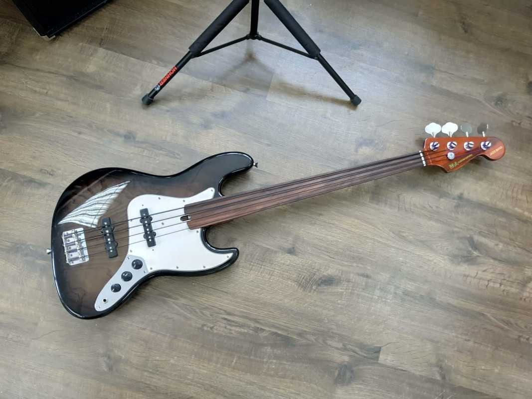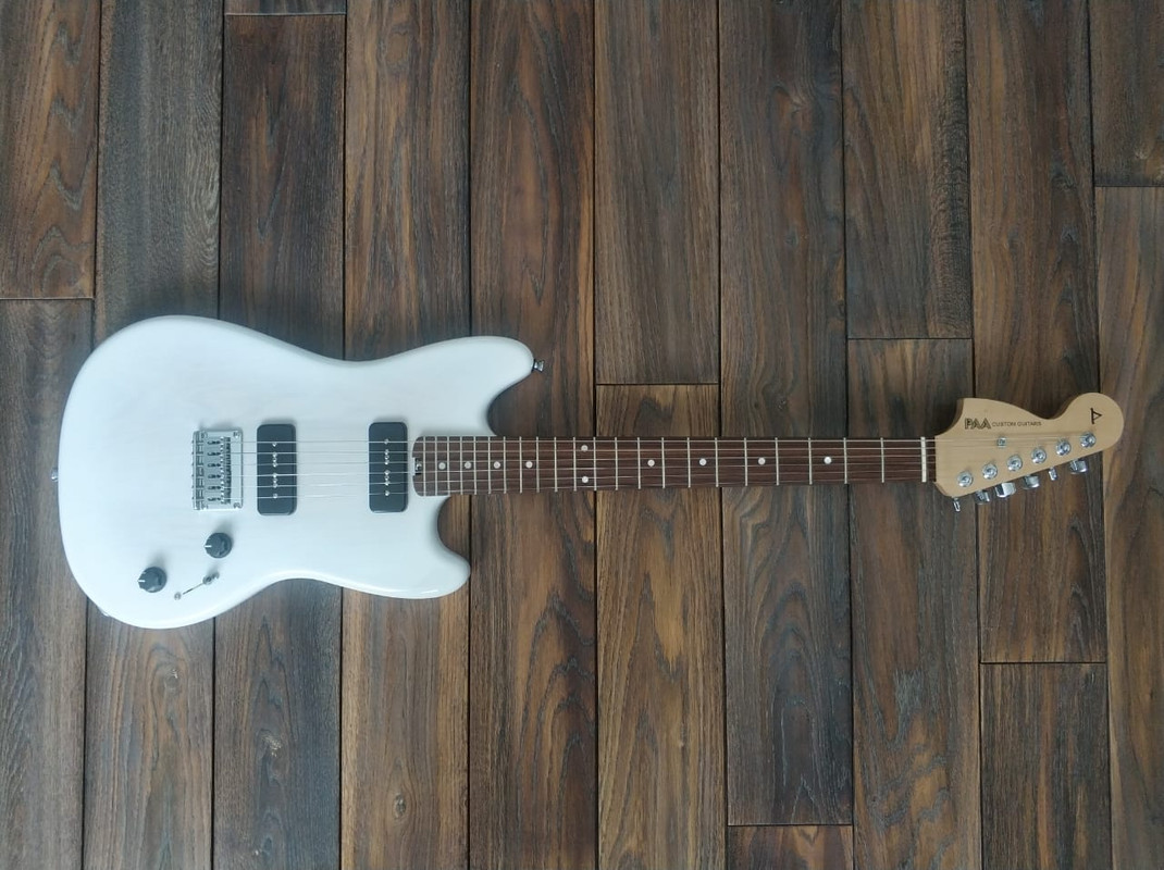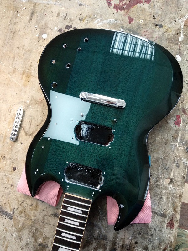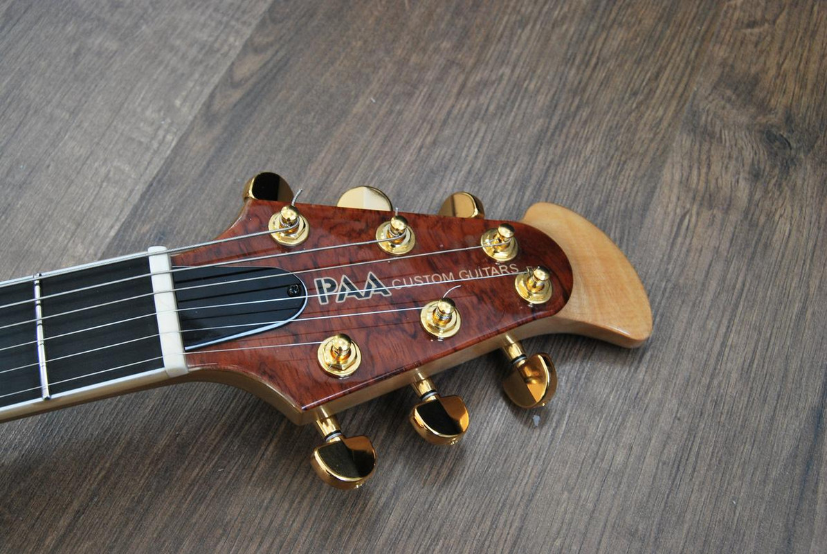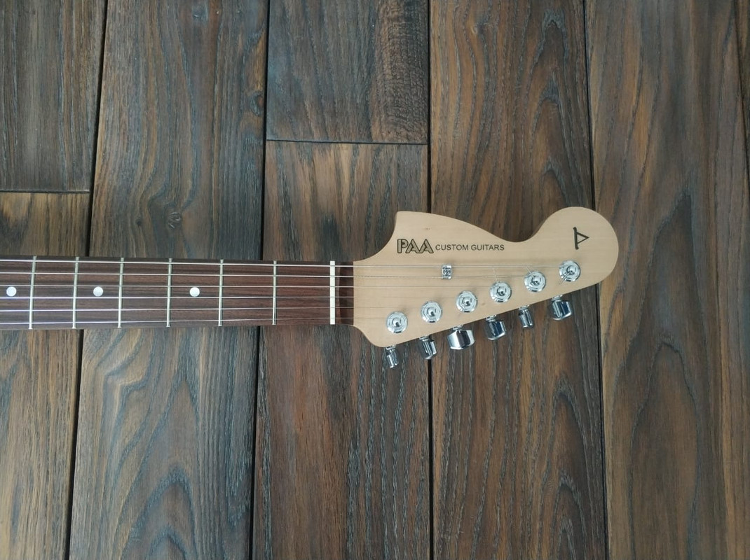 Корпус - Ясень. Покрытие - патина золото + cанберст. Лак - полиэфир от Renner.