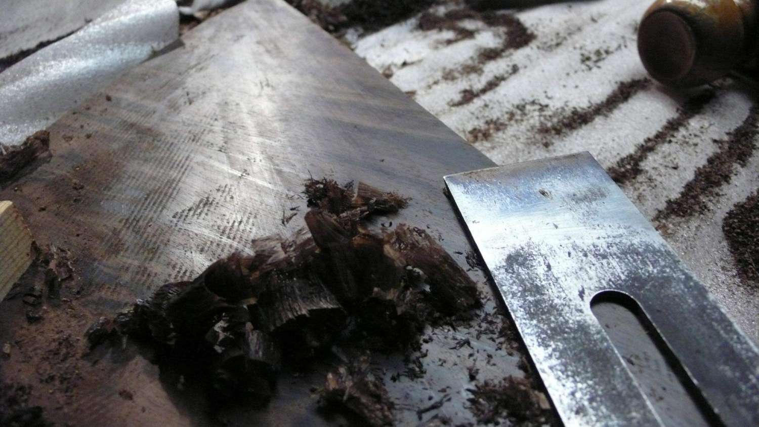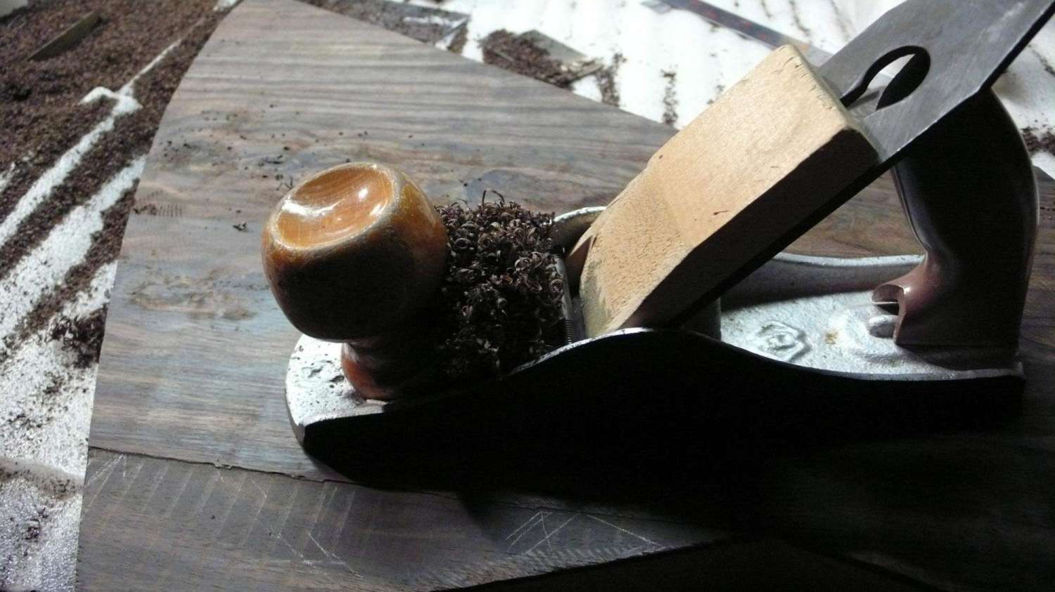 Однако началось все не так уж весело. Те рубанки что были, пусть и с острыми лезвиями, но большими ртами, без стружколомов и т.д. эбен строгать совершенно не хотели, вгрызались, делали страшные задиры. Был добыт советский шлифтик, сделано лезвие из фуганочного ножа и усовершенствован отвод стружки (забивался постоянно)