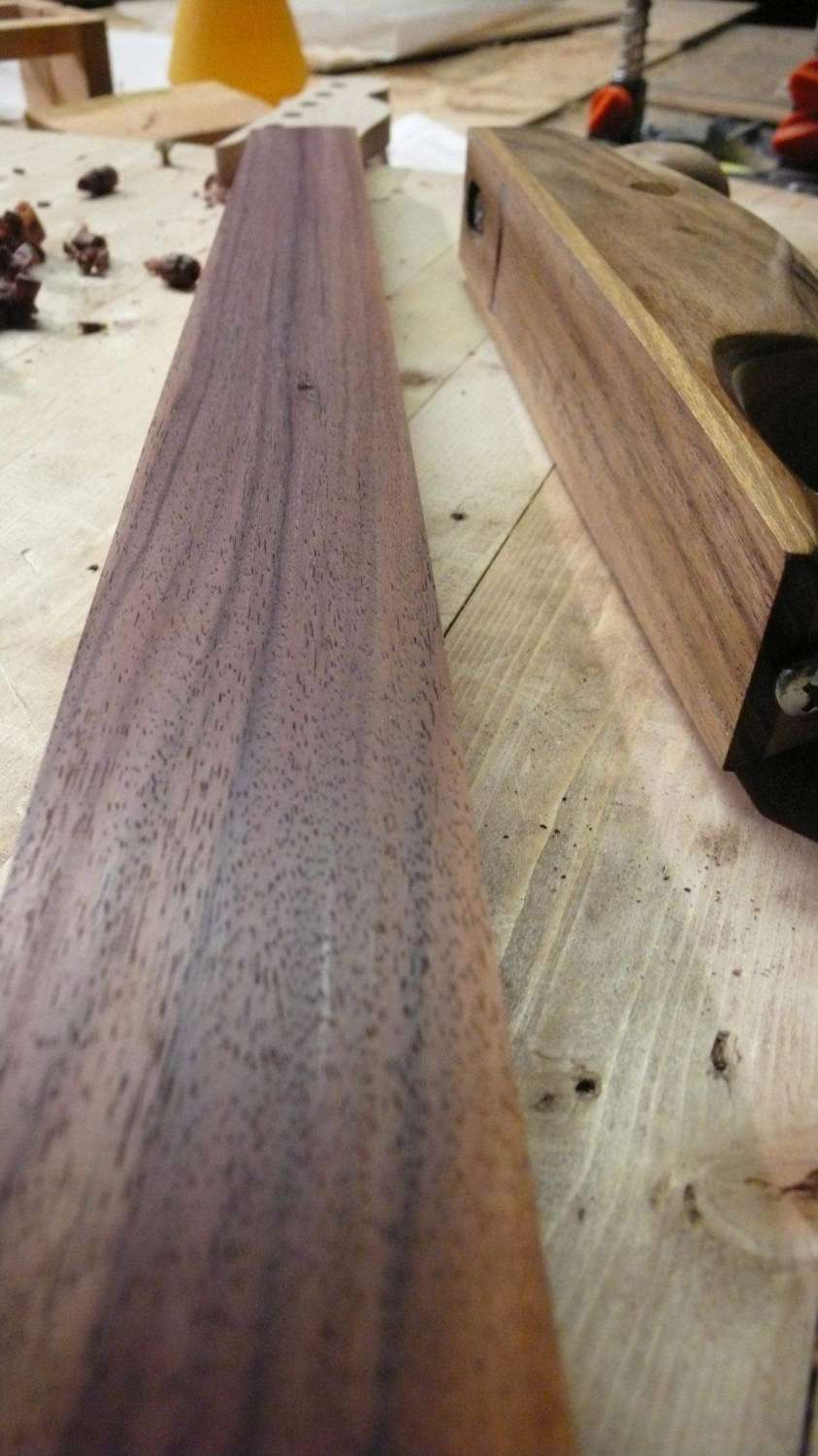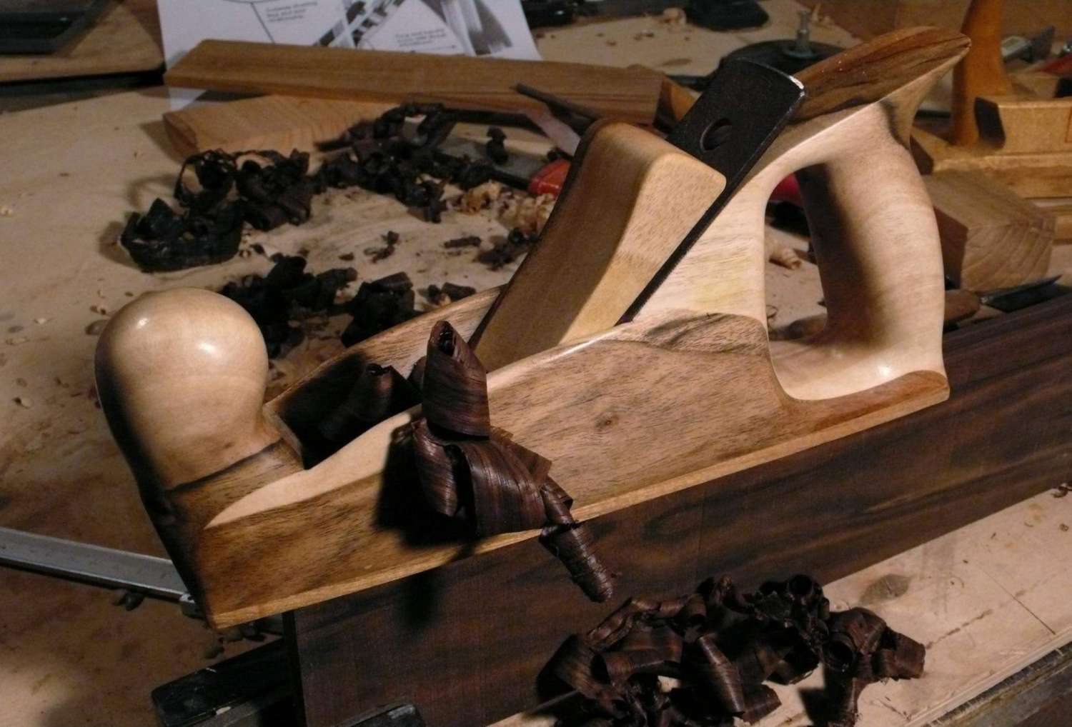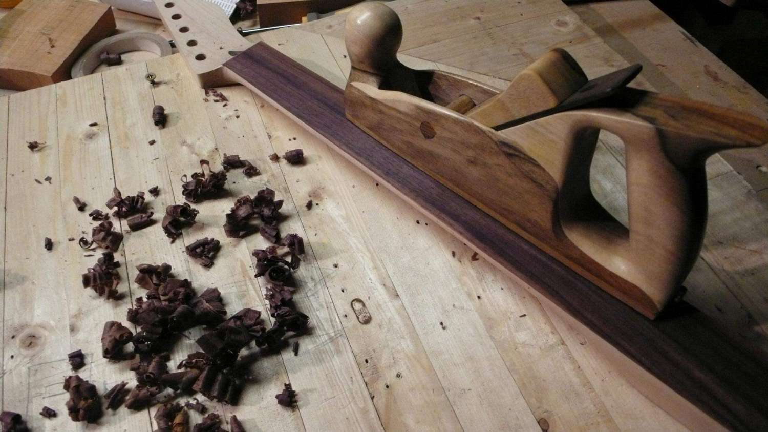 ..и вот апогей рубанка с микро ртом в ~0,3мм - эбен строгается ровно, без задиров, длинной стружкой!