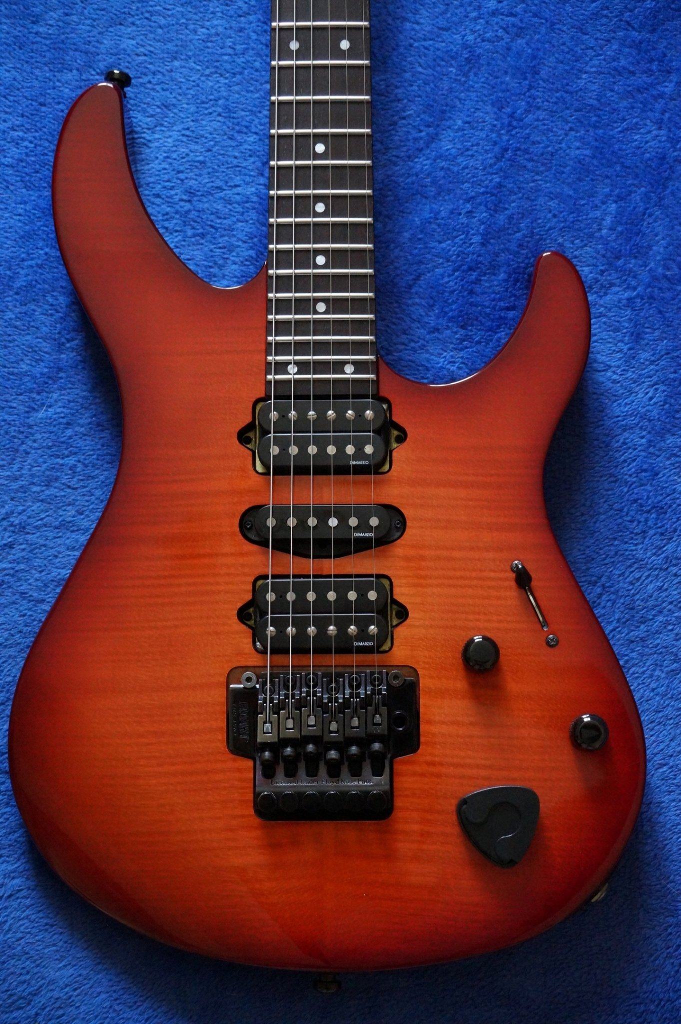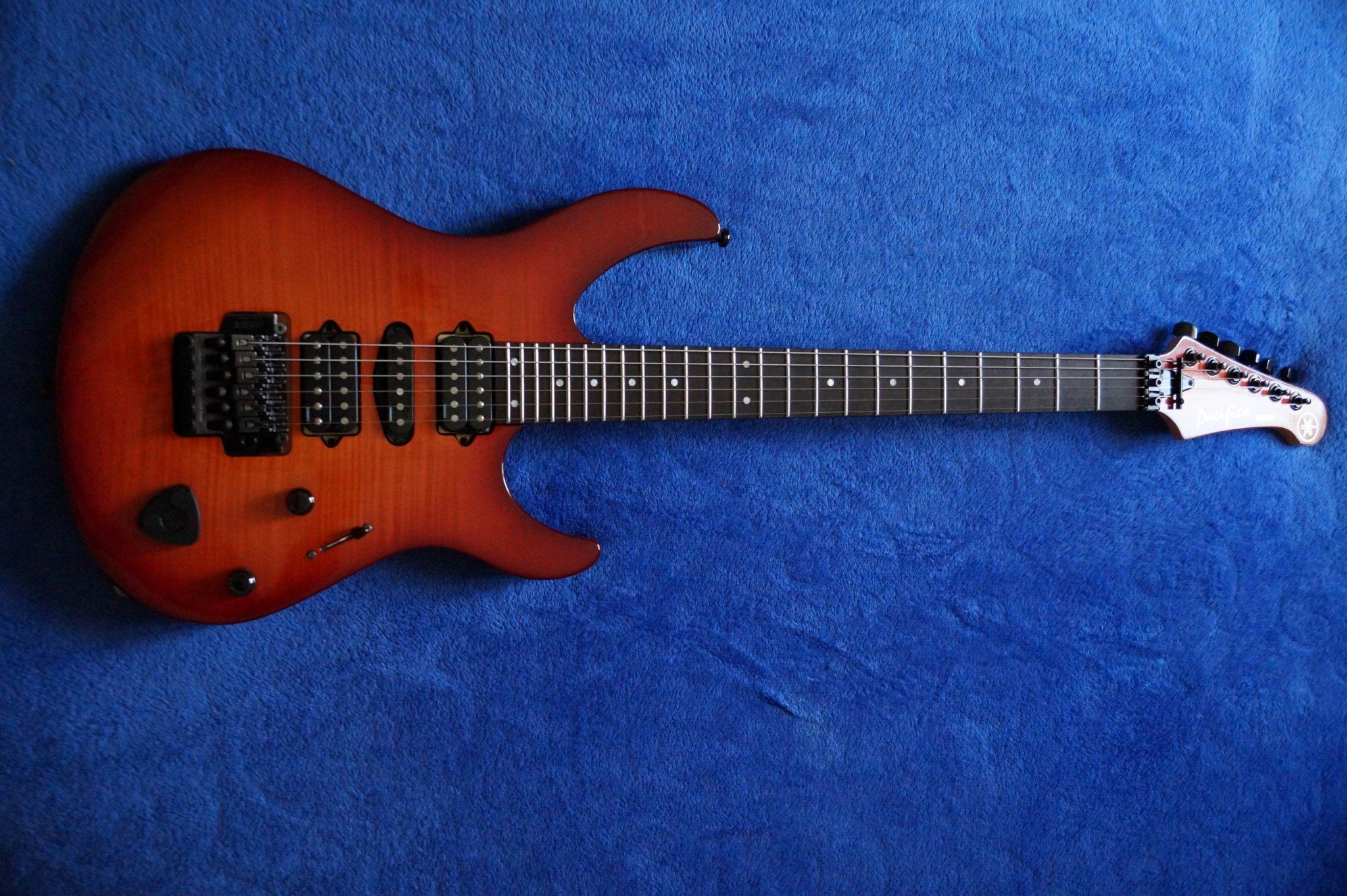 Yamaha выглядела вот так. У нее с завода звукосниматели DiMarzio (H-S-H) и флойд Takeuchi. Звучала она очень хорошо, аккуратно, средний выхлоп датчиков, строй держала отлично. В общем, универсальный инструмент, для кавер-группы самое то.