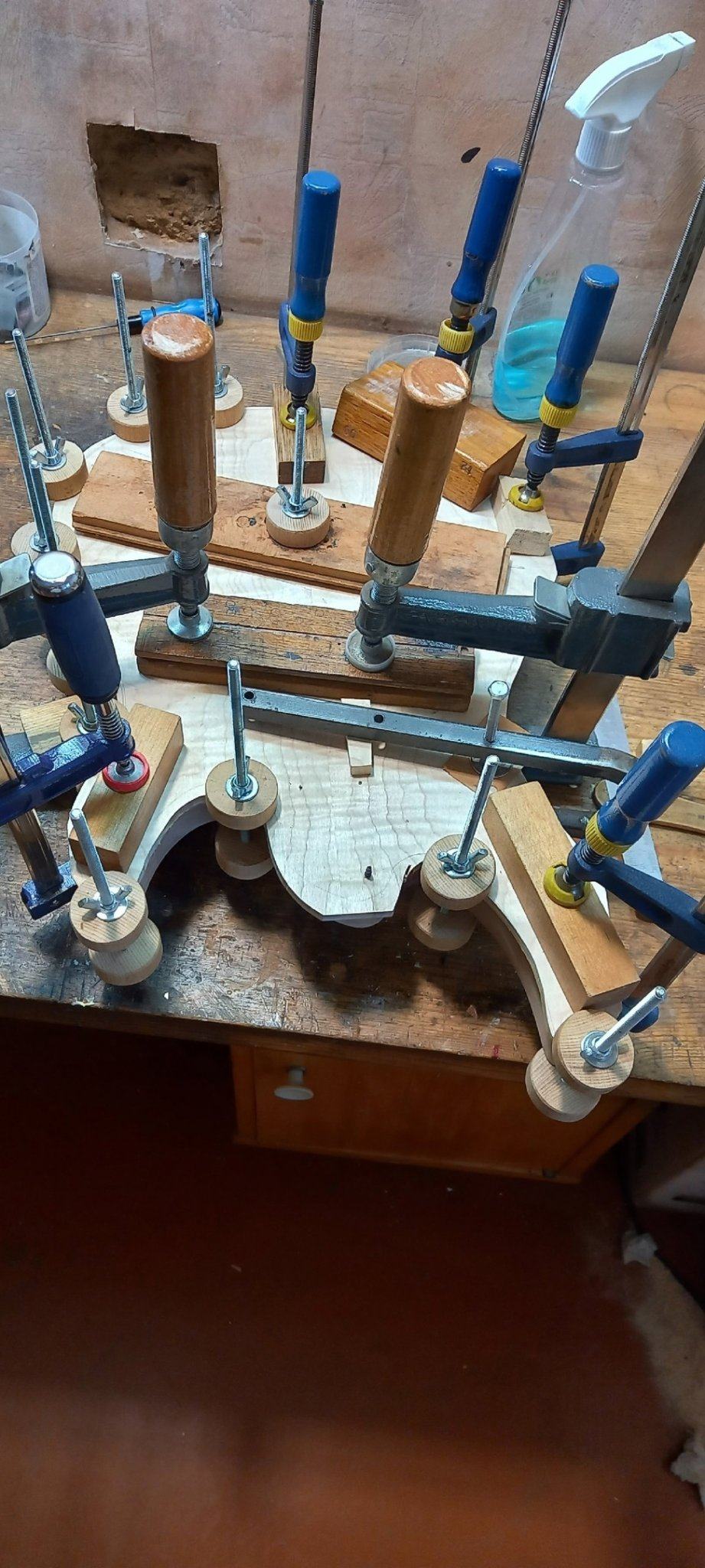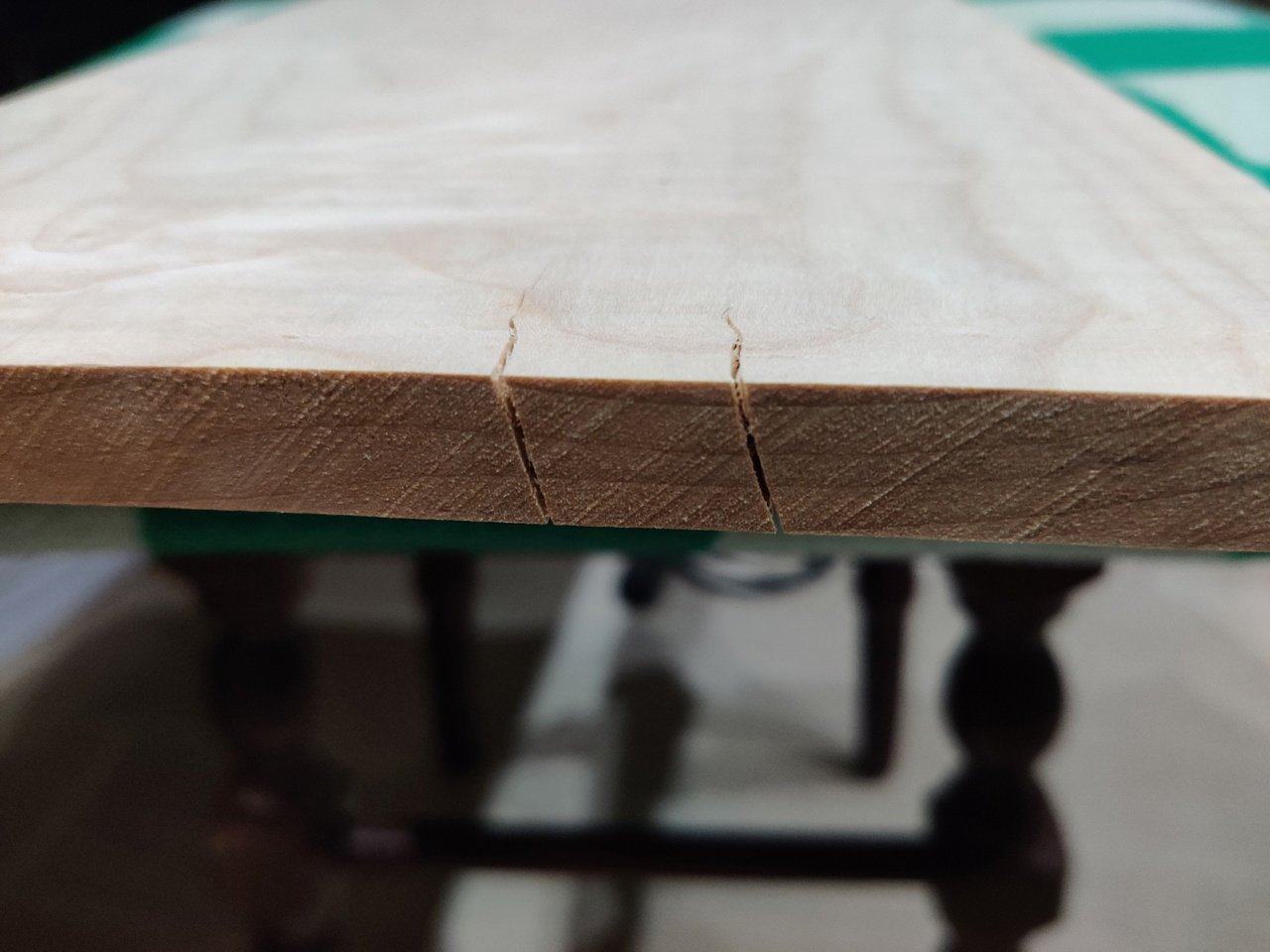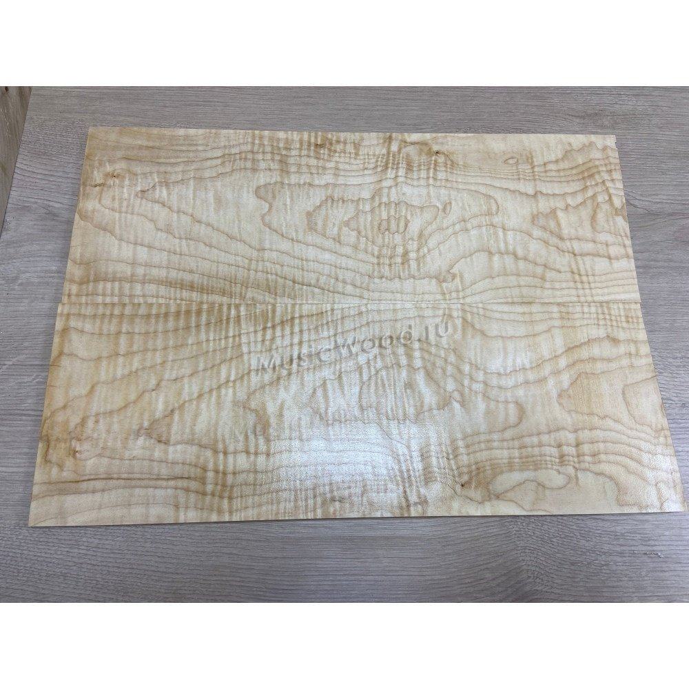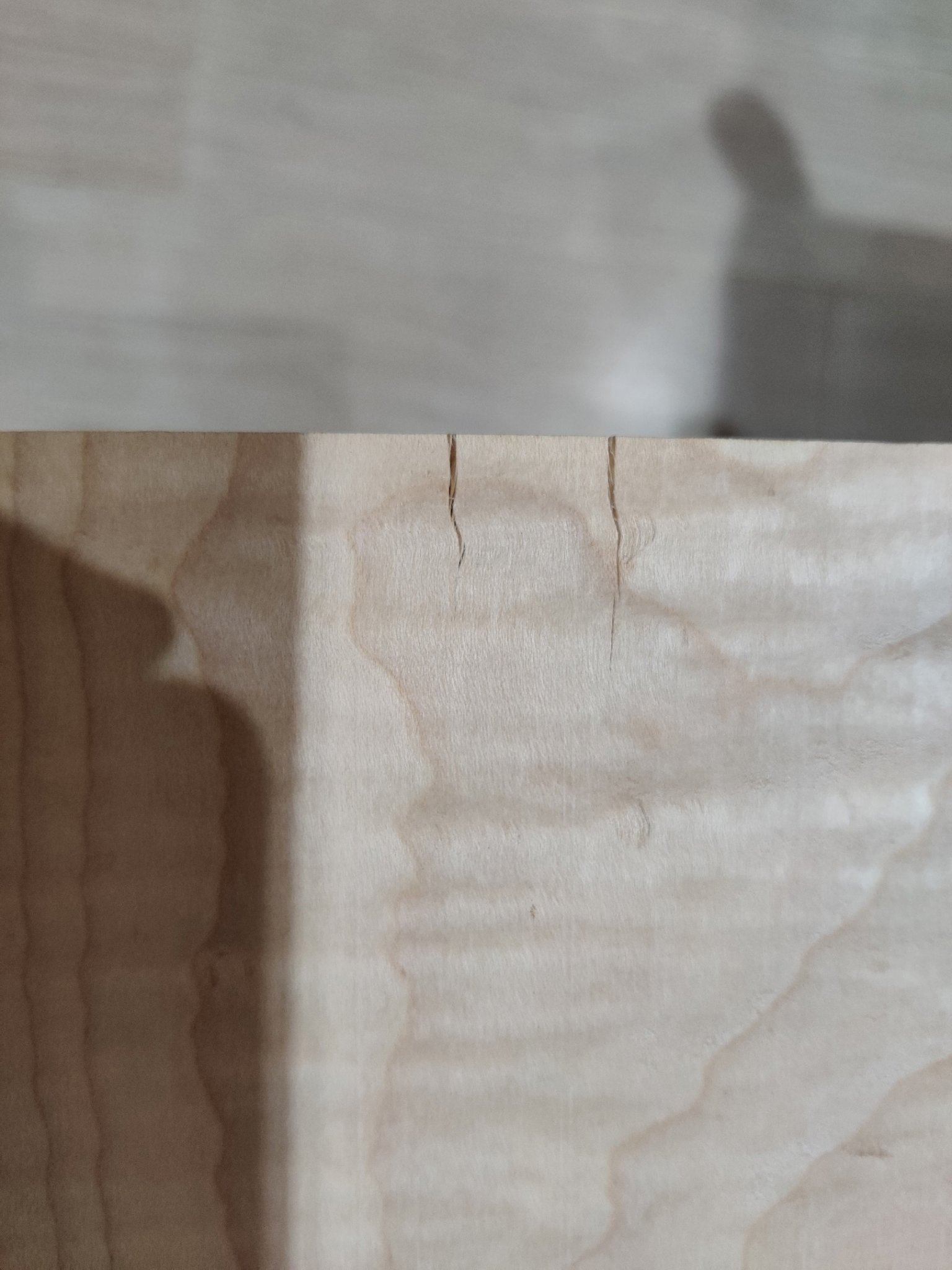 Купил топ волнистого клена в магазине MusicWood и положил дома эти досочки под пресс, чтобы дерево не повело и оно ещё просохло. Как оказалось, это было правилное решение. Досочки со временем стали на торцах трескаться, я эти торцы закрасил обычной масляной краской, чтобы трещины не пошли дальше. И оставил так на 8 месяцев...