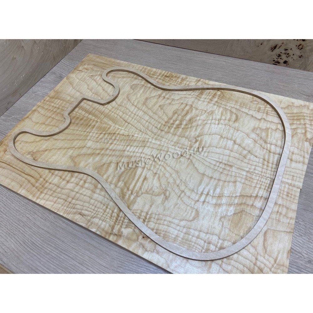 У Yamaha корпус из ольхи, на которую был наклеен шпон полосатого клена. Я решил сделать полноценный кленовый топ, поэтому часть корпуса была срезана. Также кленовые доски под топ были уменьшены в толщине, их толщина при покупке была около 14-15 мм, оставили под толщину канта (5-6 мм).
