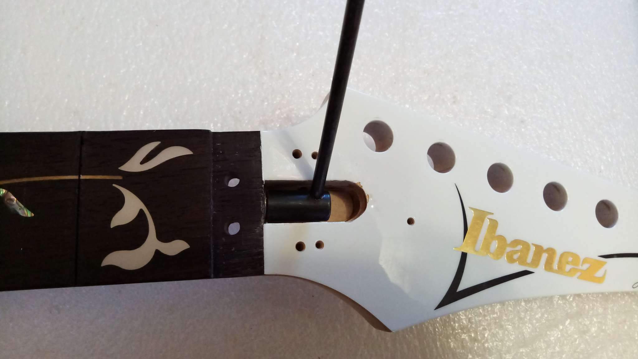Тремоло упирается в дерево и позволяет тянуть максимум на 1 тон. Отметил маркером места.