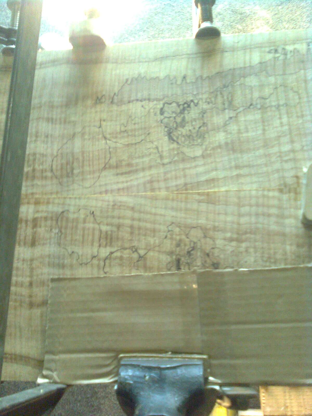 У меня перебывало в пользовании огромное количество инструментов,разных фирм и стран производителей,общим числом около 70 штук.Гитар дома навалом,поэтому делать будем нечто что уже оставило в руках и ушах приятный след.Но не банальное,не как у всех,и чтобы красиво.Итак выкристаллизовываются следующие спецификации:Корпус и вклееный гриф-красное дерево,топ-клён,накладка-палисандр,мензура уменьшенная,бридж- фиксированный.По всему что-то леспольное,но более эргономичное,а заначит делаем дабл кат.Следующий этап подготовки- выбор древесины.