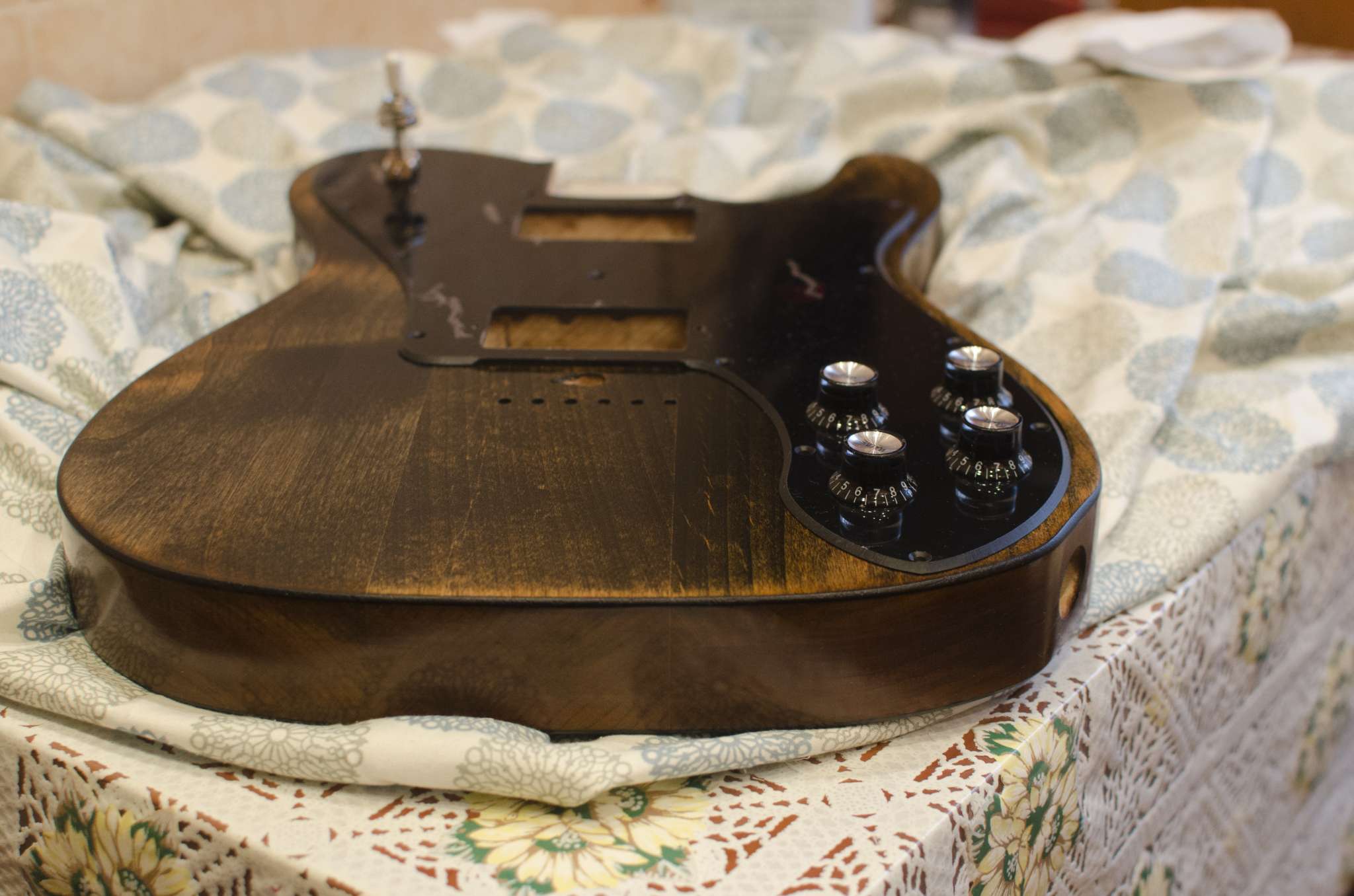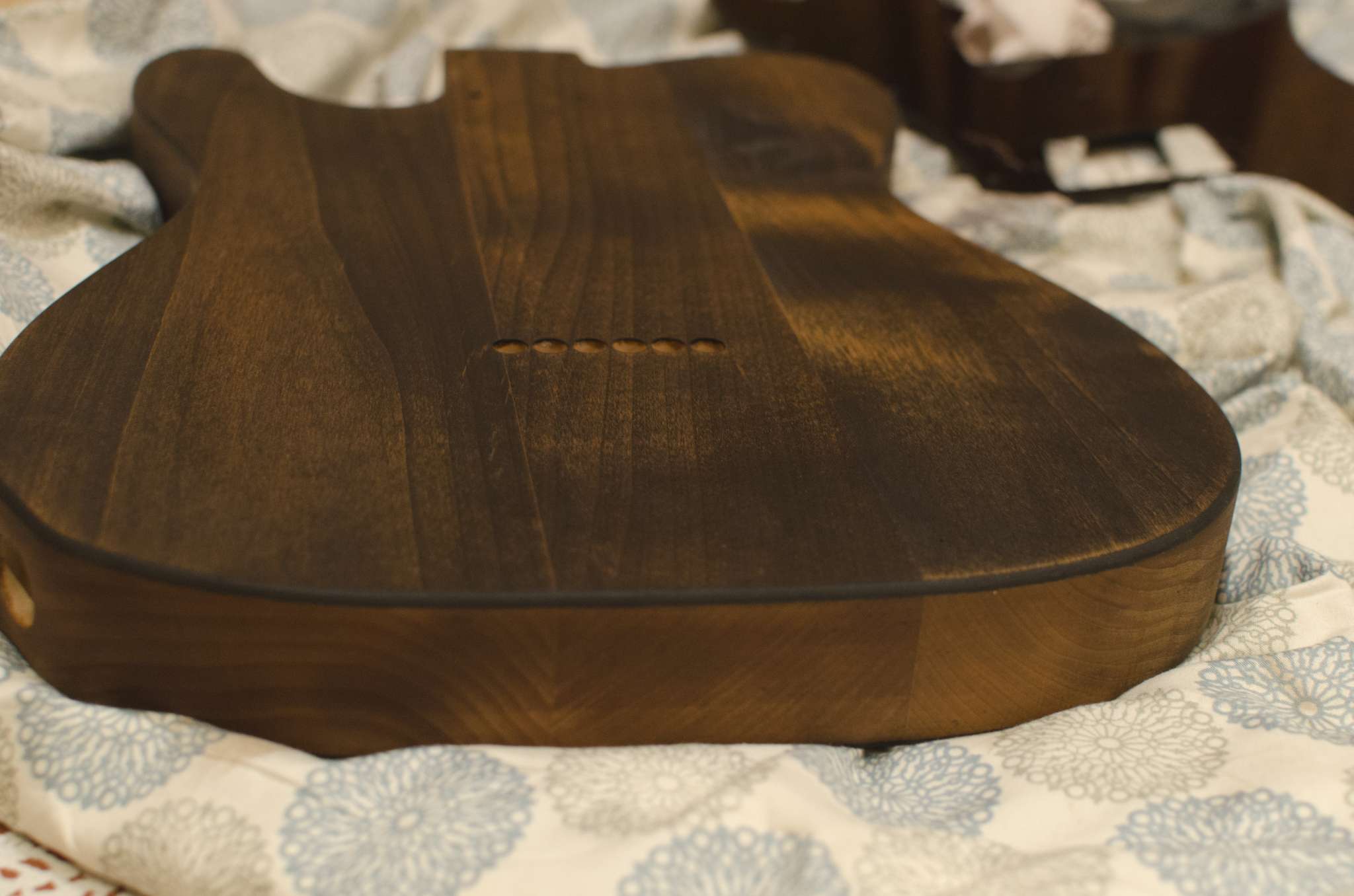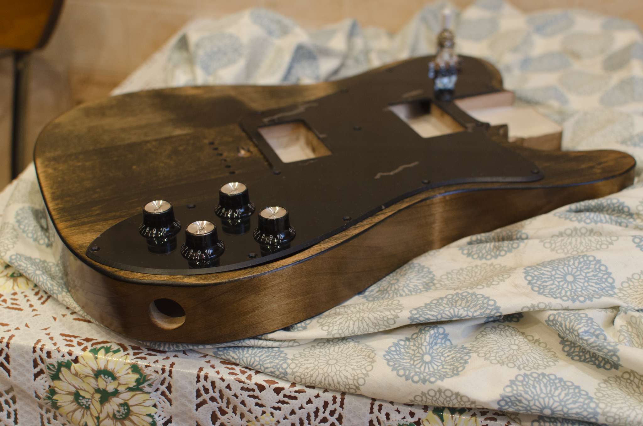 Мне приятно смотреть на белый гриф, я не хотел тонировать в желтизну и т.п..