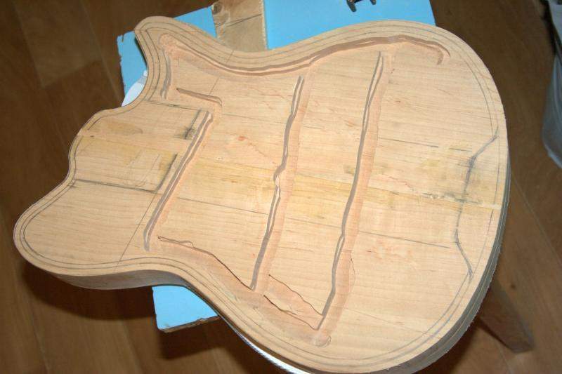 ИМХО переклей через шпон делают для повышения прочности на изгиб (в народных инструментах это стандартная процедура) клей становится как бы "ребром жесткости", ну и для красоты. Реальный резонанс "поперек грифа" не интересен, поскольку уходит в область 30-40 кГц.