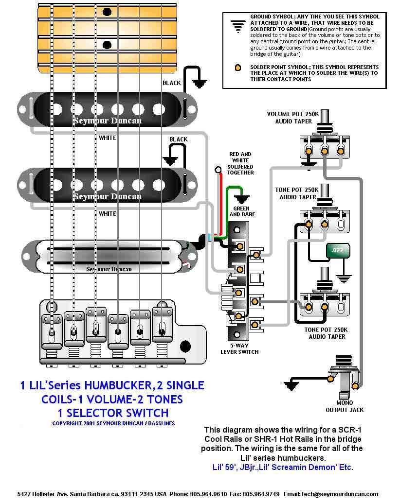 1) Распайка комбинации хамбакер-сингл-хамбакер (Ibanez Style)