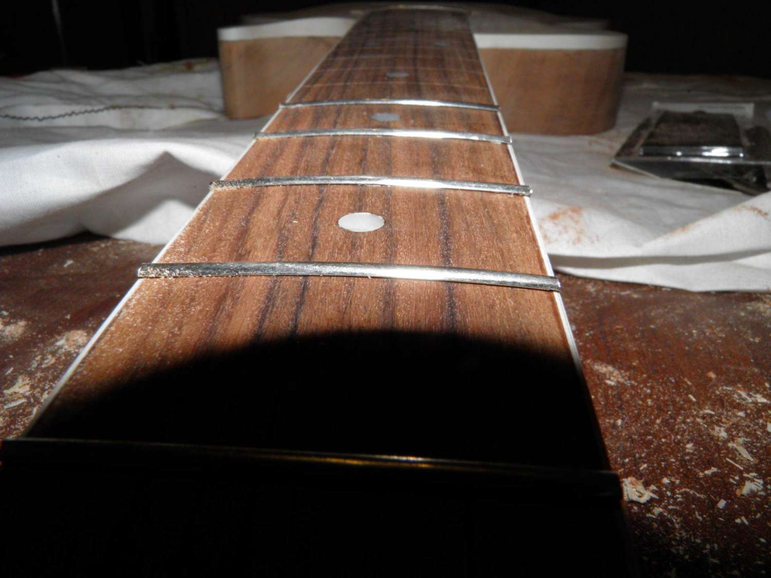 Окантовку на грифе доделал, голову не стал, заберу завтра посылку с кромкой, тогда сделаю, много изгибов, плохо получится в несколько слоёв.