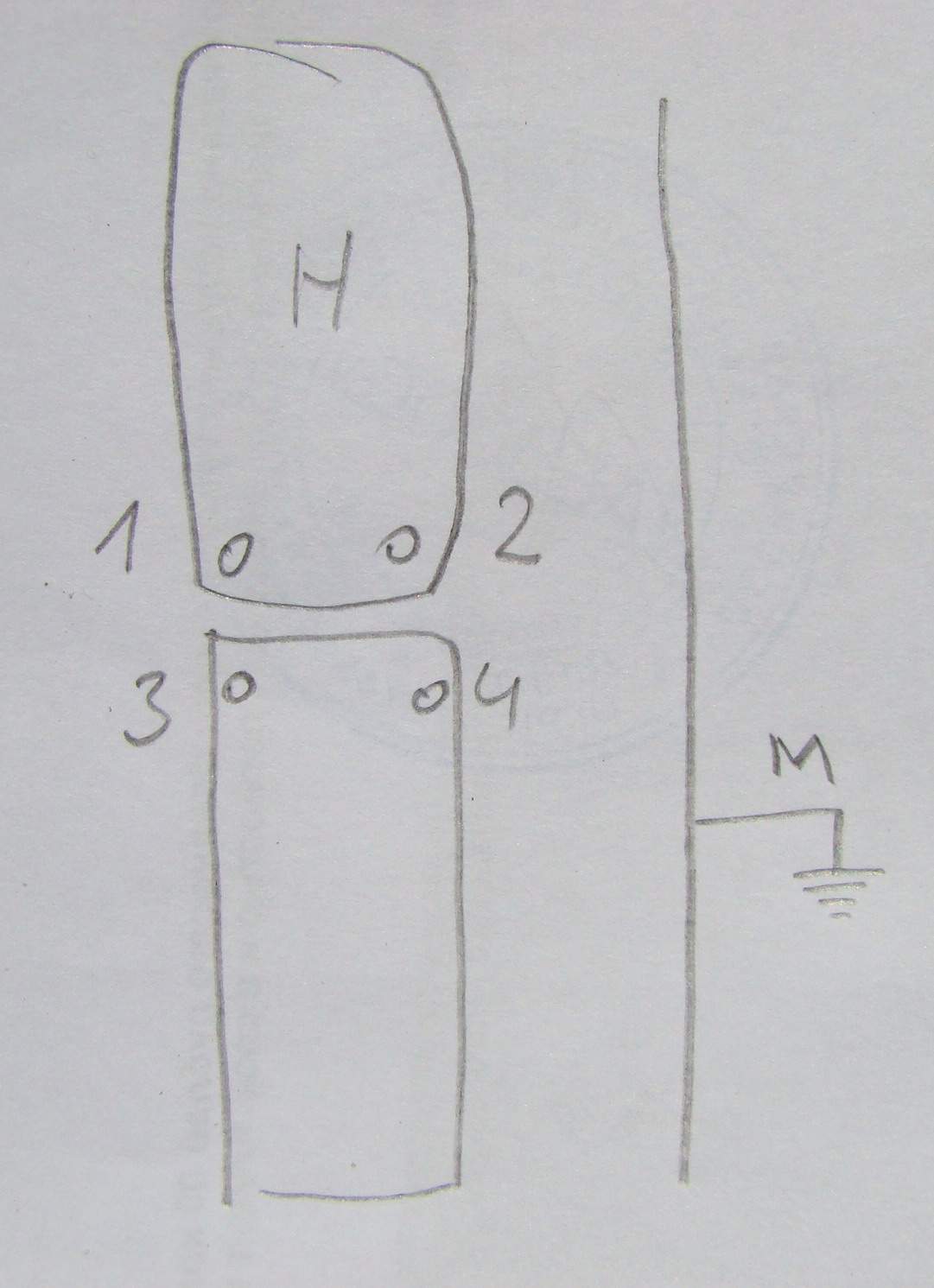 ради спортивного интереса промерил сопротивления на катушках .на картинке схематично изобразил катушки с номерами выводов и экран, он помечен бувой М.