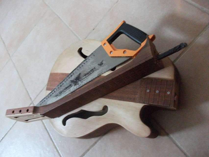 валялось у меня непонятное нечто, вырубленное еще несколько лет назад. решил превратить его в более-менее играбельный гитар.