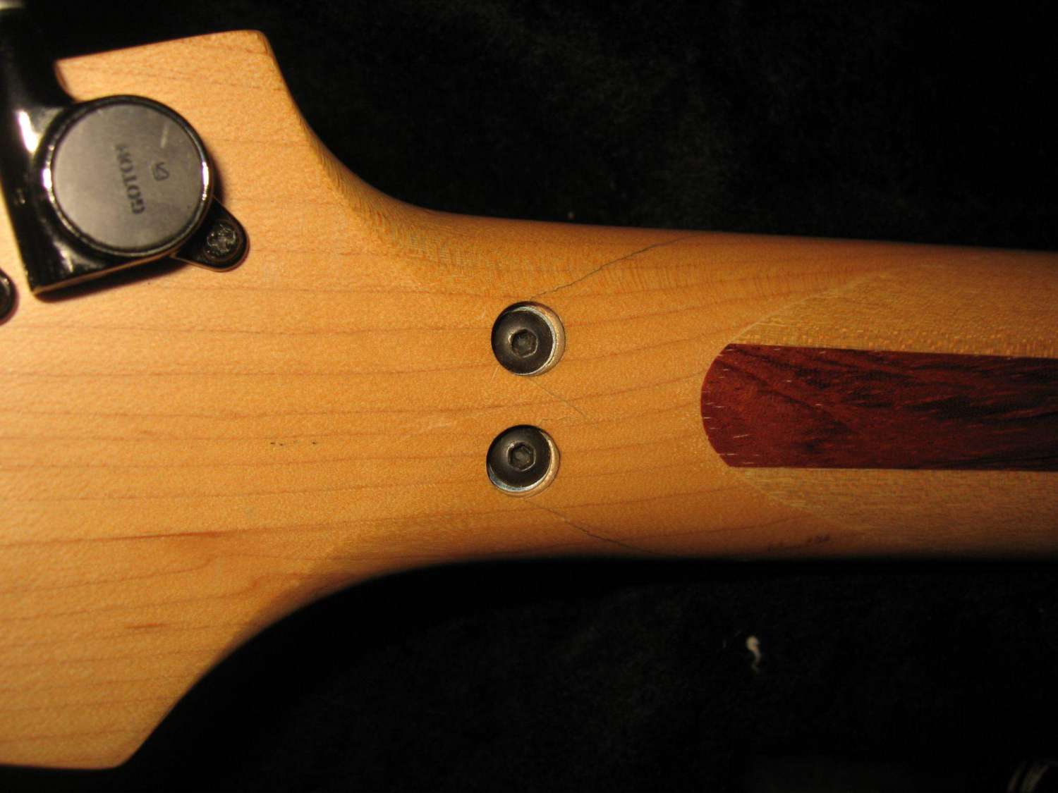 К чему весь этот траходром.Заделаешь с большими потугами (100% все равно не получишь),а она опять сломается-ведь это Ибанез.Без усиления там не обойтись,А усиливать просто негде-гриф тонкий,топ-лок сквозными отверстиями и канал анкера в самом узком месте -гриф-голова,сделали свое черное дело.Говорю же-фирменная болезнь.
