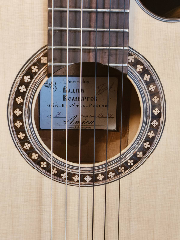 Слышно как позвякивает о лады вторая струна. Перед тем как дать инструмент исполнителю, я занимался интонацией — подпиливал нижний порожек. Больше всего проблем создавала третья струна — она никак не хотела строить на 12-м ладу. В конце концов я добился почти идеального строя, но порожек стал немного ниже. Я не успел отследить последствия и отдал гитару Михаилу Александровичу. Вот во время записи и вылезло это бренчание струны о лады. Я все исправил, струны больше не звенят на ладах. Но переписать видео не получилось.