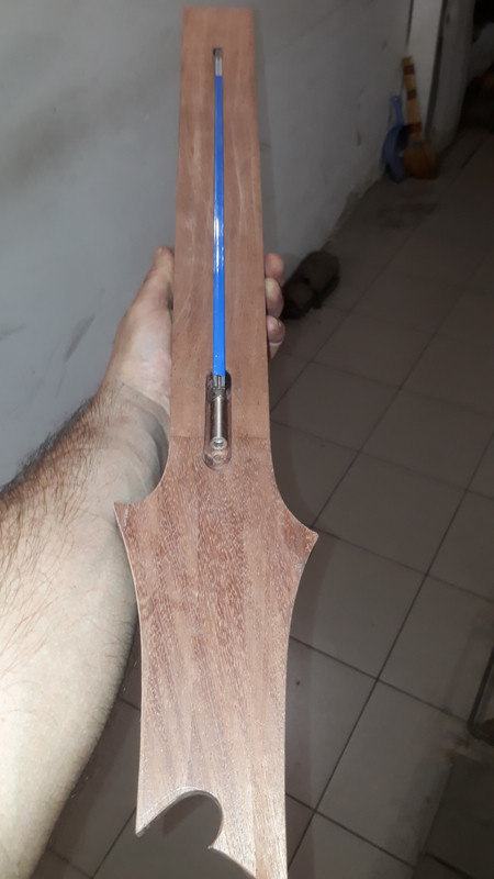 ... и добавил:А что, почему бы и не запилить из своей древесины? Я кстати, накладку сделал из клёна, который у тестя за гаражами рос. Блин, и по глупости распустил всего одно небольшое бревно на доску. Остальное попилил на чурки и поколол на дрова. Только когда начал колоть, понял, что допустил ошибку. Клён оказался офигенный, без сучков, наростов и болячек, очень светлый, волокна ровные