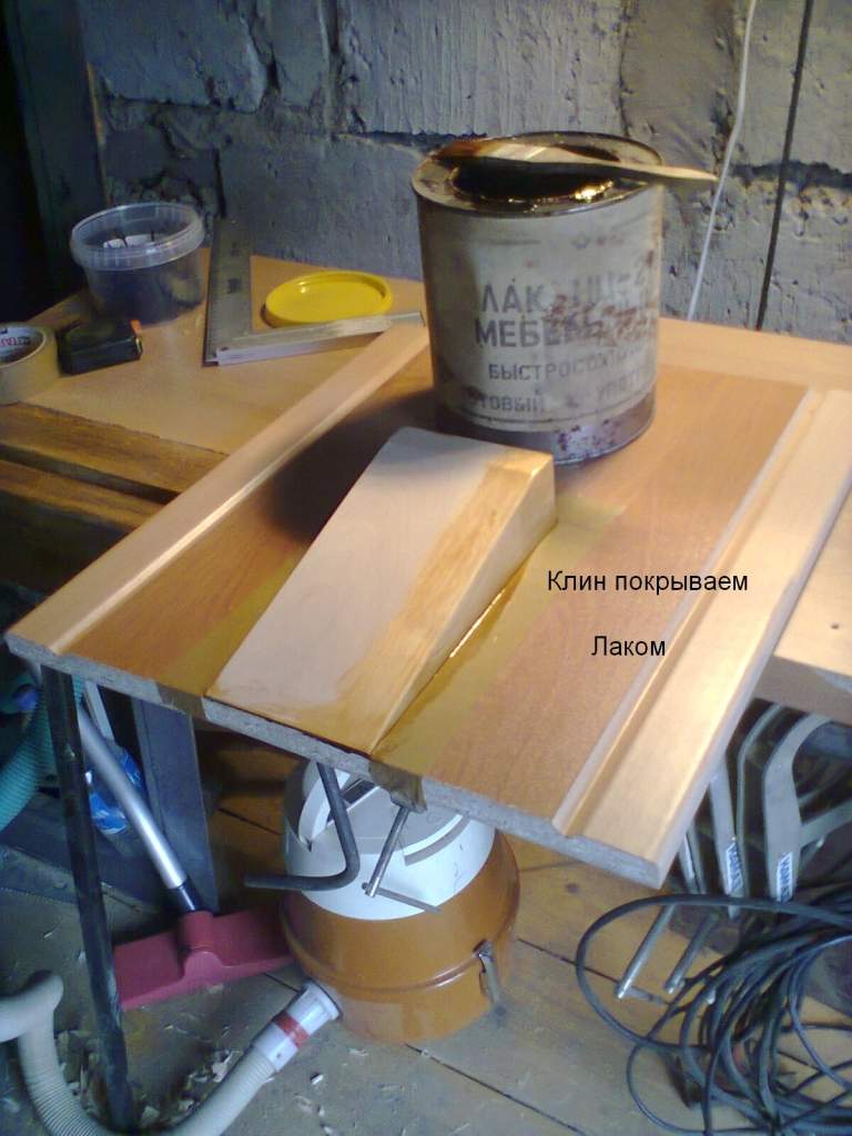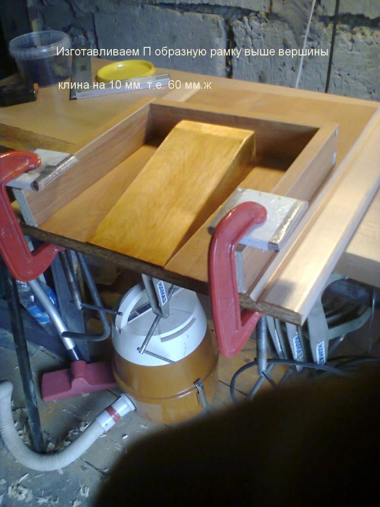 Выпиливаем клин из бруска, в моём случае, это 50 мм. берёза.
