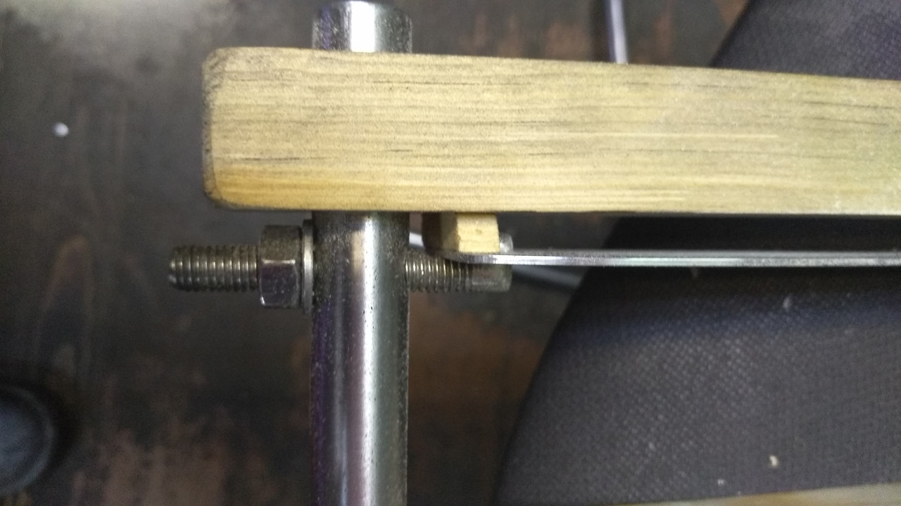 Обе рейки подвижные. Сейчас высталена толщина 7мм подкладыванием свёрел по концам пилы, но лучше что-то менее скользкое, а то часто выпадают. Толщину отпиливаемого пласта можно выставить до 20 мм, а общую толщину распиливаемой доски до 110мм. За счёт натяжения пилы рейки не сдвигаются, стоят жёстко. Рез полметра сделал за полчаса. Ширина доски - 190мм. Но рекомендую сразу продумать какую-то ручку для удобства.