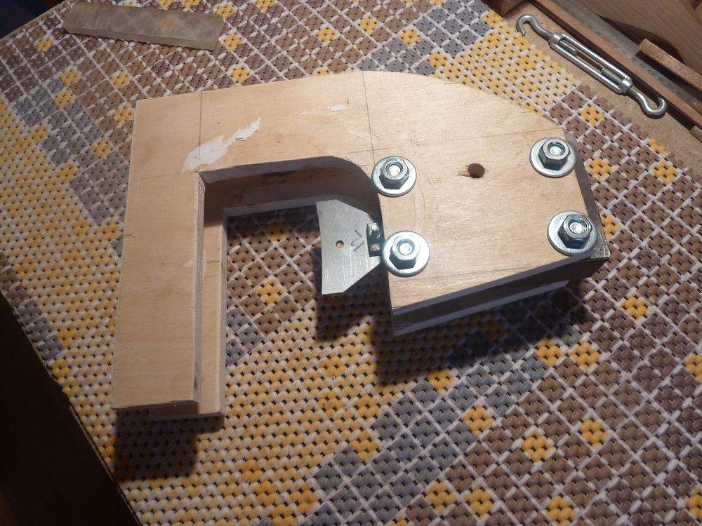 На удивление всё получилось, результат вполне удовлетворил, конечно не идеально, но учитывая, что электрорубанком пользуюсь второй раз в жизни, довольно прилично получилось. К тому же надо было не только подровнять заготовки, распиленные на циркулярке, но и подогнать в нужный размер - страшно подумать сколько времени я бы вручную на это потратил. А так на всё ушло около 2 часов, правда треть времени было потрачено на выставление зазоров на агрегате, вследствии упрощенной конструкции это несколько неудобно, но для разовых работ думаю вполне оправдано. На радостях даже из фанерных обрезков сделал пару струбцин для предстоящей склейки - самый простой вариант из подручных средств.