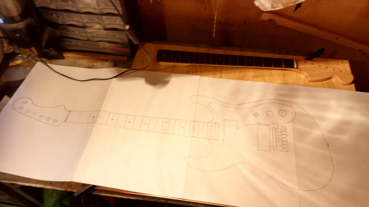 На нем уже была нарисована форма как не странно именно той гитары, которую я пытаюсь сделать, но все равно буду использовать свою