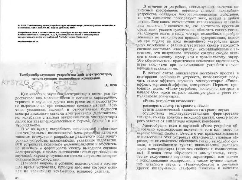 еще брошюра в помощь радиолюбителю, там был клевый овердрайв, и еще различные приставки в основном из польских, гдровских и болгарских журналов, периодически надергиваемые в журнал радио в раздел "зарубежом" редакторами.