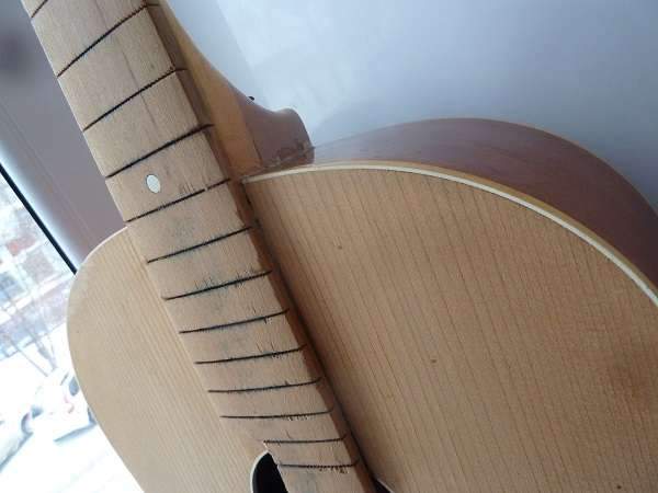 Да, эта гитара именно под металлические струны. Смотри всегда на колки. Если шток, куда струны наматываются, металлический, 6 мм диаметром - под металл. Штоки из пластика около 10 мм диаметром - только под нейлон. Чешские Кремоны, завозившиеся в Союз в 70-80х были именно под нейлон с пластиковыми штоками(внутри у них,конечно, металлическая сердцевина). С порожком не мудри. Это хорошая идея. Смысл в раздельных сёдлах, как и на электрогитаре, отстроить мензуру каждой струны ИНДИВИДУАЛЬНО. Потеряны порожки - выпили сам из твёрдого пластика, дерева, латуни.