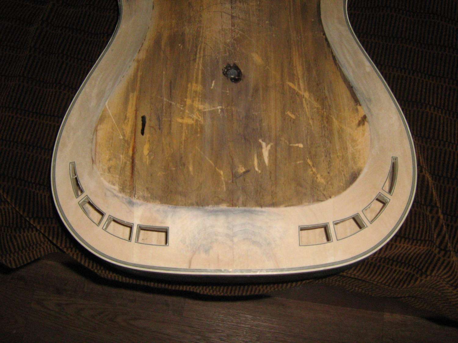 Путем вышеописанных приспособин и прокачки скилла "stone ass" резонаторные отверстия или по простому - "дырки" были подготовлены для вклейки канта АВС