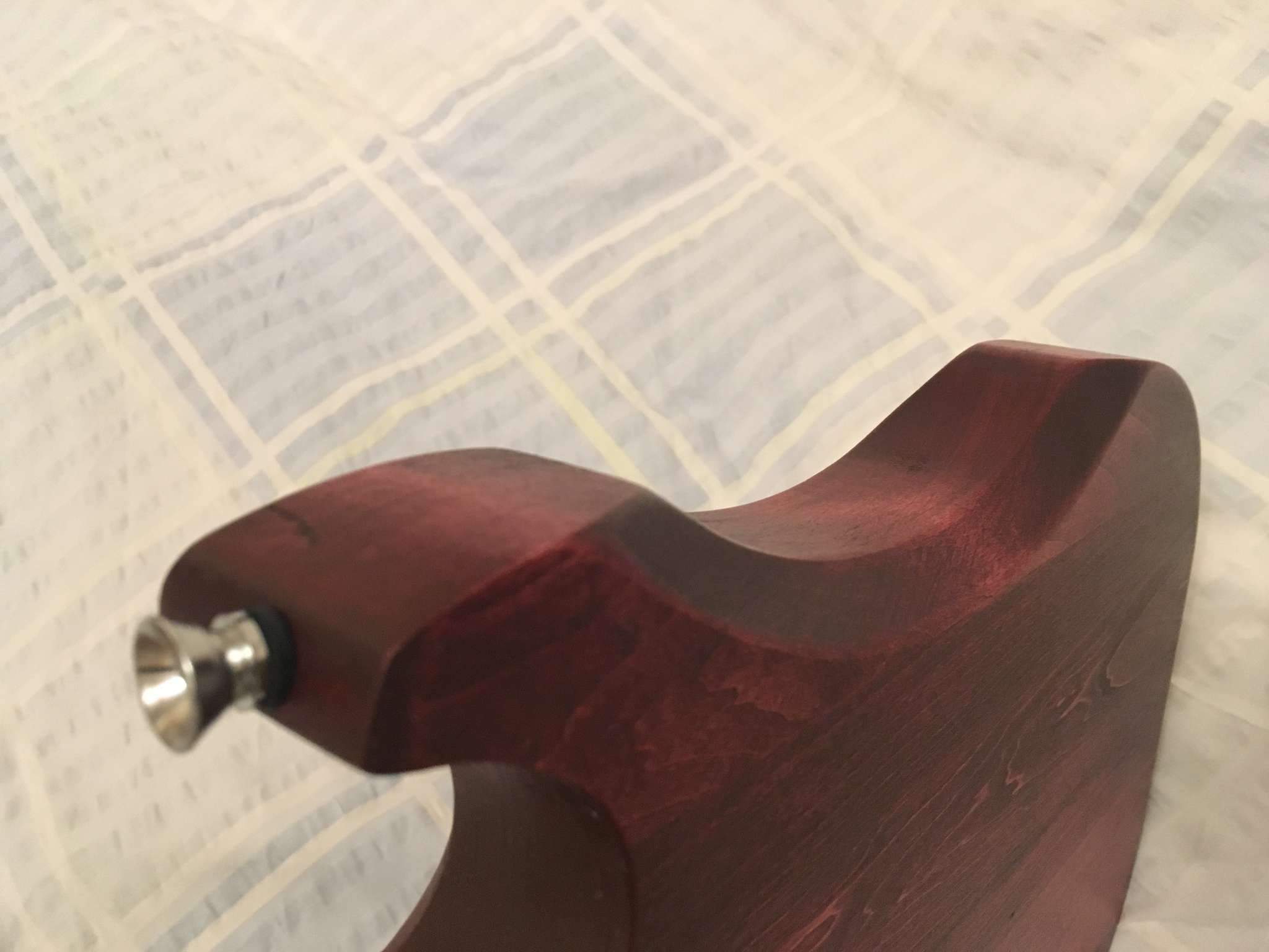 - Гриф, ожидаемо, тяжеловат – вроде, и не сильно перевешивает, но неудобно. Скорее всего, ремень закреплю за голову грифа. Хотел немного сточить гриф и сделать его потоньше, но не совсем ясно, на какой глубине анкер и сколько дерева в запасе.