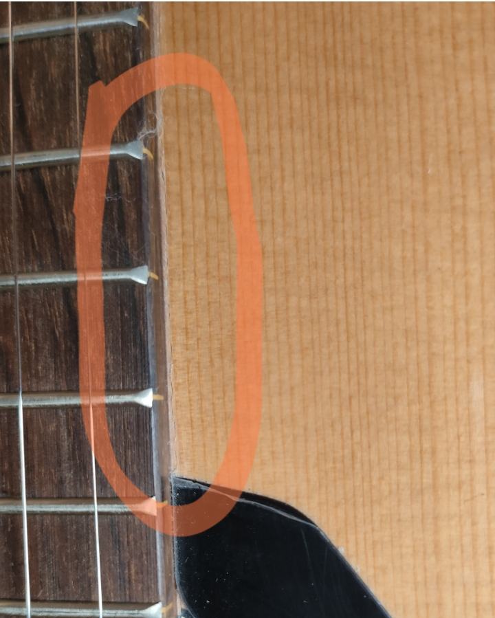 3- Гриф скорее всего, всё же подотклеился, вместе с клёцем.